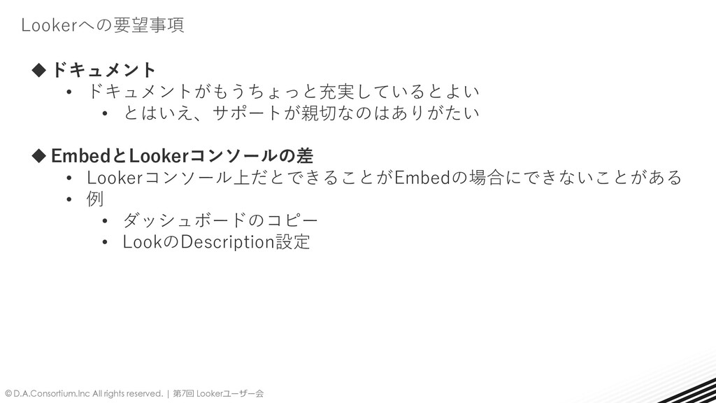 © D.A.Consortium.Inc All rights reserved. | 第7回 Lookerユーザー会 Lookerへの要望事項 uドキュメント