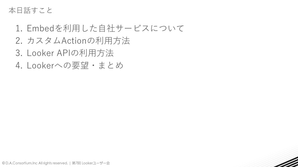 © D.A.Consortium.Inc All rights reserved. | 第7回 Lookerユーザー会 本⽇話すこと 1.