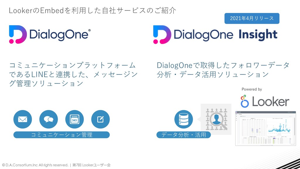 © D.A.Consortium.Inc All rights reserved. | 第7回 Lookerユーザー会 LookerのEmbedを利⽤した⾃社サービスのご紹介 コミュニケーションプラットフォーム