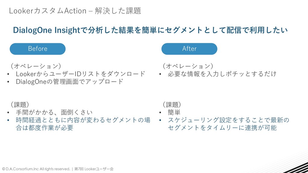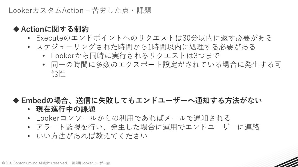 © D.A.Consortium.Inc All rights reserved. | 第7回 Lookerユーザー会 まとめ カスタムAction