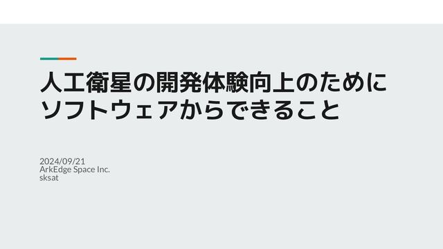 人工衛星の開発体験向上のために ソフトウェアからできること 2024/09/21 ArkEdge Space Inc. sksat