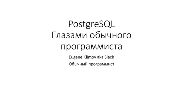 В своем докладе я постарался дать ответы на вопросы, с которыми в той или иной степени сталкивается любой обычный программист работая с СУБД PostgreSQL. Надеюсь получилось простым и понятным языком рассказать о том, как работает PostgreSQL, а также о том, как его эксплуатировать и масштабировать.