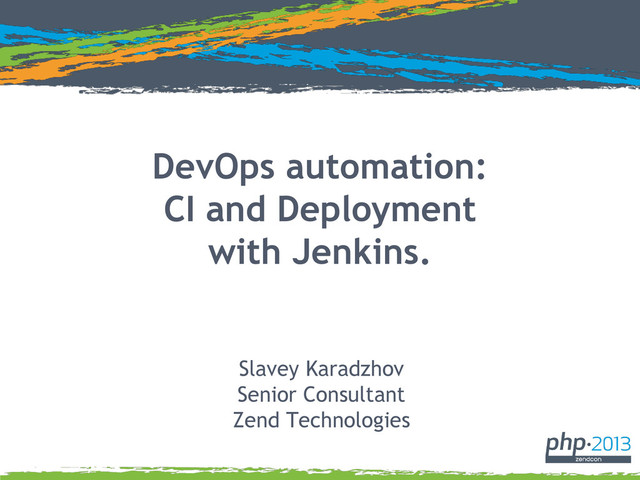 Agile development and CI are increasingly becoming the de-fact standard for web application development teams. It allows for faster release cycles, and significantly reduces the amount of bugs in a realease if implemented correctly. During this session I will show you how to setup a CI environment using Jenkins and Zend Server, and also how to automate common Zend Server tasks.