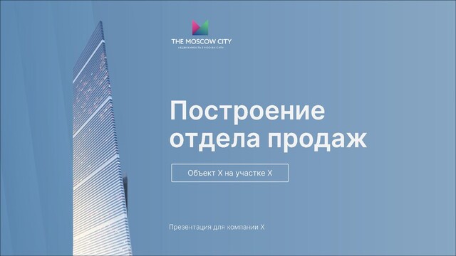 Компания THE MOSCOW CITY занимается всеми видами услуг, связанными с элитной и офисной недвижимостью в Москва-Сити. Одной из новых услуг была помощь в построении отдела продаж для застройщиков. Компании требовалось сформировать шаблон коммерческого предложения по этой услуге.