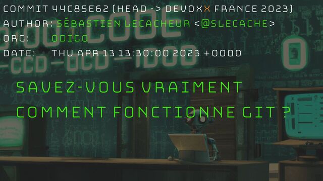 Que vous veniez de commencer à utiliser git ou que vous l'utilisiez tous les jours depuis des années, cette session vous donnera les connaissances pour passer maitre dans l'art du git.
