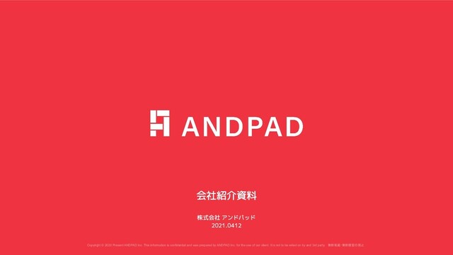 and was prepared by ANDPAD Inc. for the use of our client. It is not to be relied on by and 3rd party. 無断転載・無断複製の禁止 Confidential 2 INDEX 01 02 03 04 会社概要 組織について 業界課題とミッションについて 事業について 05 06 07 ANDPADのこれから 働く環境について 各種サイトのご紹介