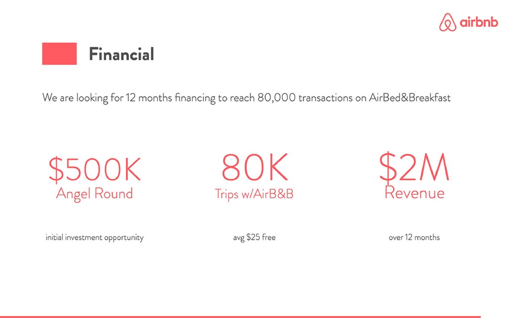 he Airbnb pitch deck from 2009 has become an increasingly popular reference for entrepreneurs around the world. The company founders, Brian Chesky, Joe Gebbia and Nathan Blecharczyk used this pitch to raise $600K from Sequoia Capital and Y Ventures. The company has since become a giant in the Travel industry, closing a round in early 2015 on a valuation of over USD $20 Billion.