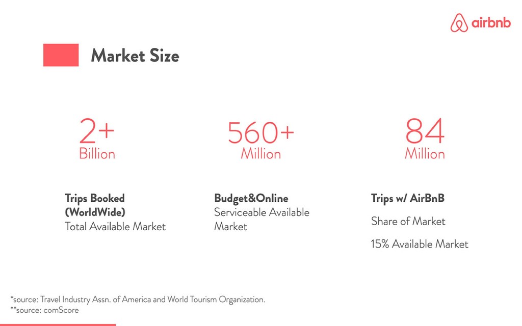 Originally recovered from a 2011 talk by Blecharczyk on Startup Bootcamp in Boston, we got a glimpse at the exact slides that they used to pitch investors on their original fundraise. The deck was incredibly successful at summarizing the company vision and the huge market opportunity they had before them.