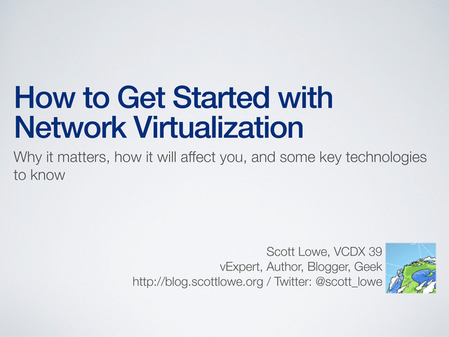 how it will affect you, and some key technologies to know Scott Lowe, VCDX 39 vExpert, Author, Blogger, Geek http://blog.scottlowe.org / Twitter: @scott_lowe