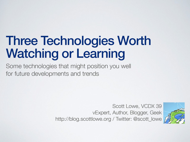 position you well for future developments and trends Scott Lowe, VCDX 39 vExpert, Author, Blogger, Geek http://blog.scottlowe.org / Twitter: @scott_lowe