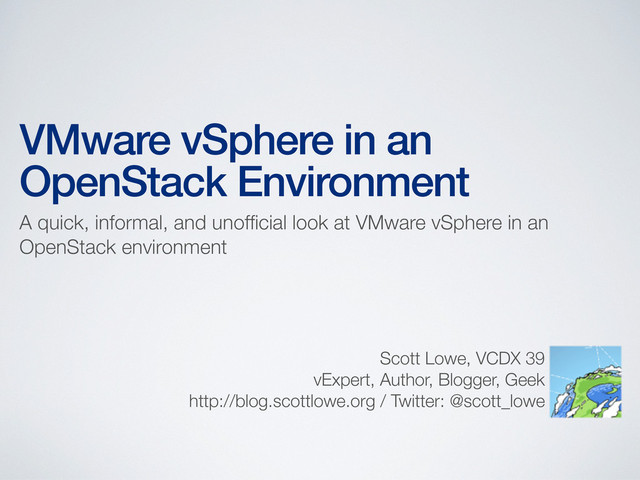 first introduced with Grizzly •Abstracts an entire cluster as a single nova-compute instance •Details of ESXi clusters are hidden from OpenStack •This enables HA, DRS, vMotion, etc. •Original Grizzly version was single-cluster driver •To scale to multiple clusters, you’d need multiple nova- compute instances •These nova-compute instances could run as separate VMs or as processes on the same VM