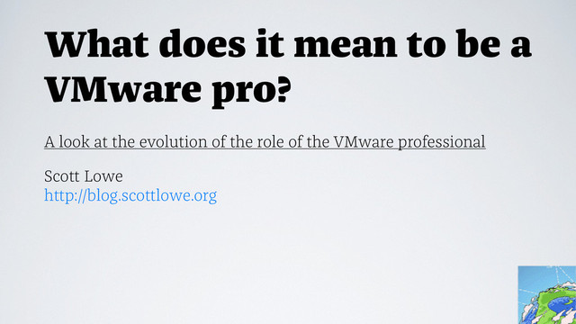 This career development-focused presentation was given on April 7, 2015 at the Austin VMUG, and discusses ways in which VMware professionals need to grow, evolve, and change in order to continue to be leaders within their organizations and within the industry.