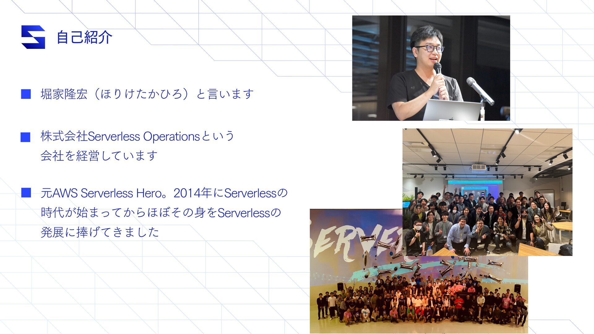 ࣗݾհ גࣜձࣾ4FSWFSMFTT0QFSBUJPOTͱ͍͏ ձࣾΛܦӦ͍ͯ͠·͢ ݩ"844FSWFSMFTT)FSPɻʹ4FSWFSMFTTͷ ͕࣌࢝·͔ͬͯΒ΄΅ͦͷΛ4FSWFSMFTTͷ ൃలʹ๋͖͛ͯ·ͨ͠ ງՈོʢ΄Γ͚͔ͨͻΖʣͱݴ͍·͢