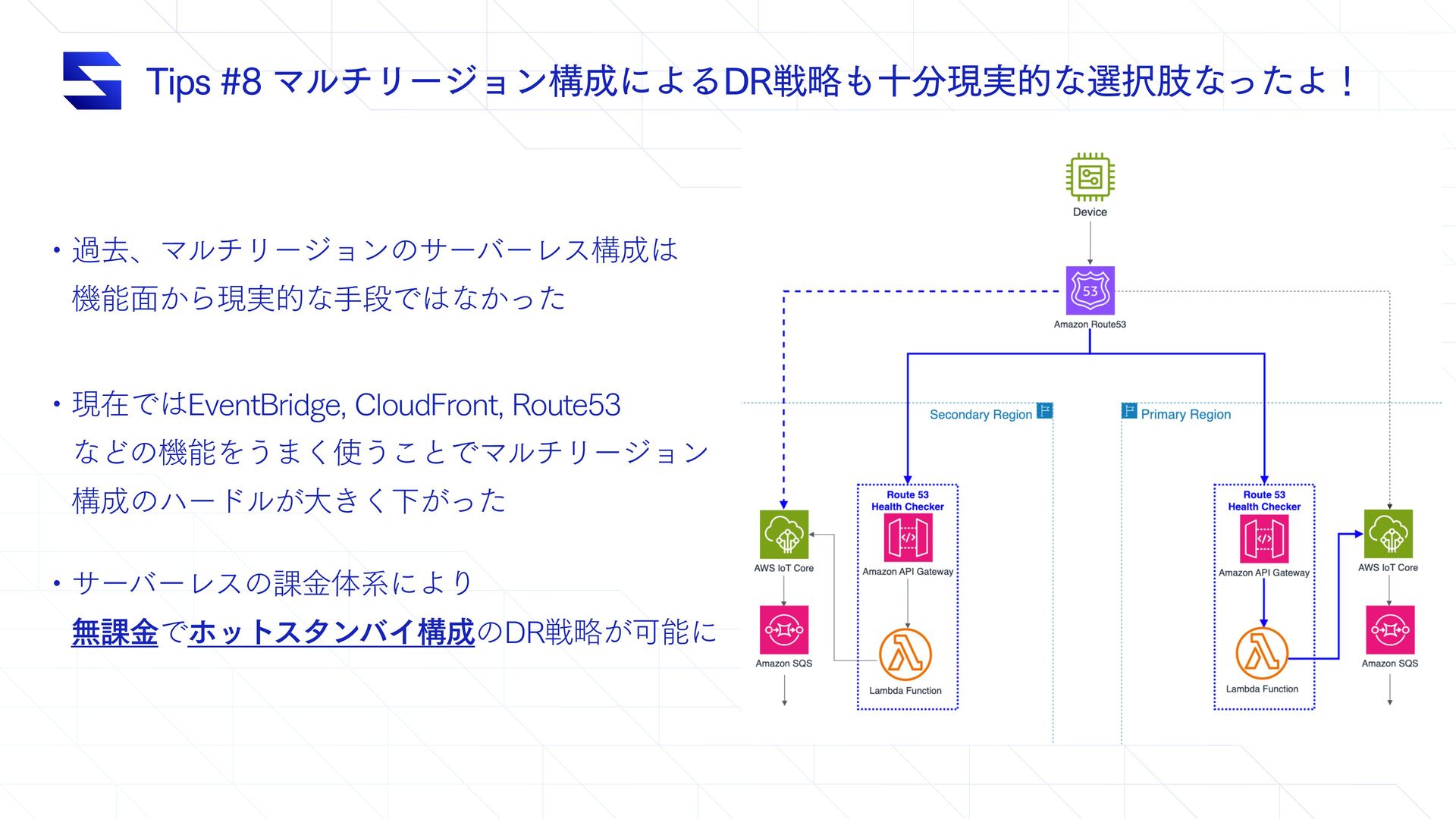 5JQTϚϧνϦʔδϣϯߏʹΑΔ%3ઓུेݱ࣮తͳબࢶͳͬͨΑʂ ɾաڈɺϚϧνϦʔδϣϯͷαʔόʔϨεߏ ɹػೳ໘͔Βݱ࣮తͳखஈͰͳ͔ͬͨ ɾݱࡏͰ&WFOU#SJEHF $MPVE'SPOU 3PVUF ɹͳͲͷػೳΛ͏·͘͏͜ͱͰϚϧνϦʔδϣϯ ɹߏͷϋʔυϧ͕େ͖͘Լ͕ͬͨ ɾαʔόʔϨεͷ՝ۚମܥʹΑΓ ɹແ՝ۚͰϗοτελϯόΠߏͷ%3ઓུ͕Մೳʹ
