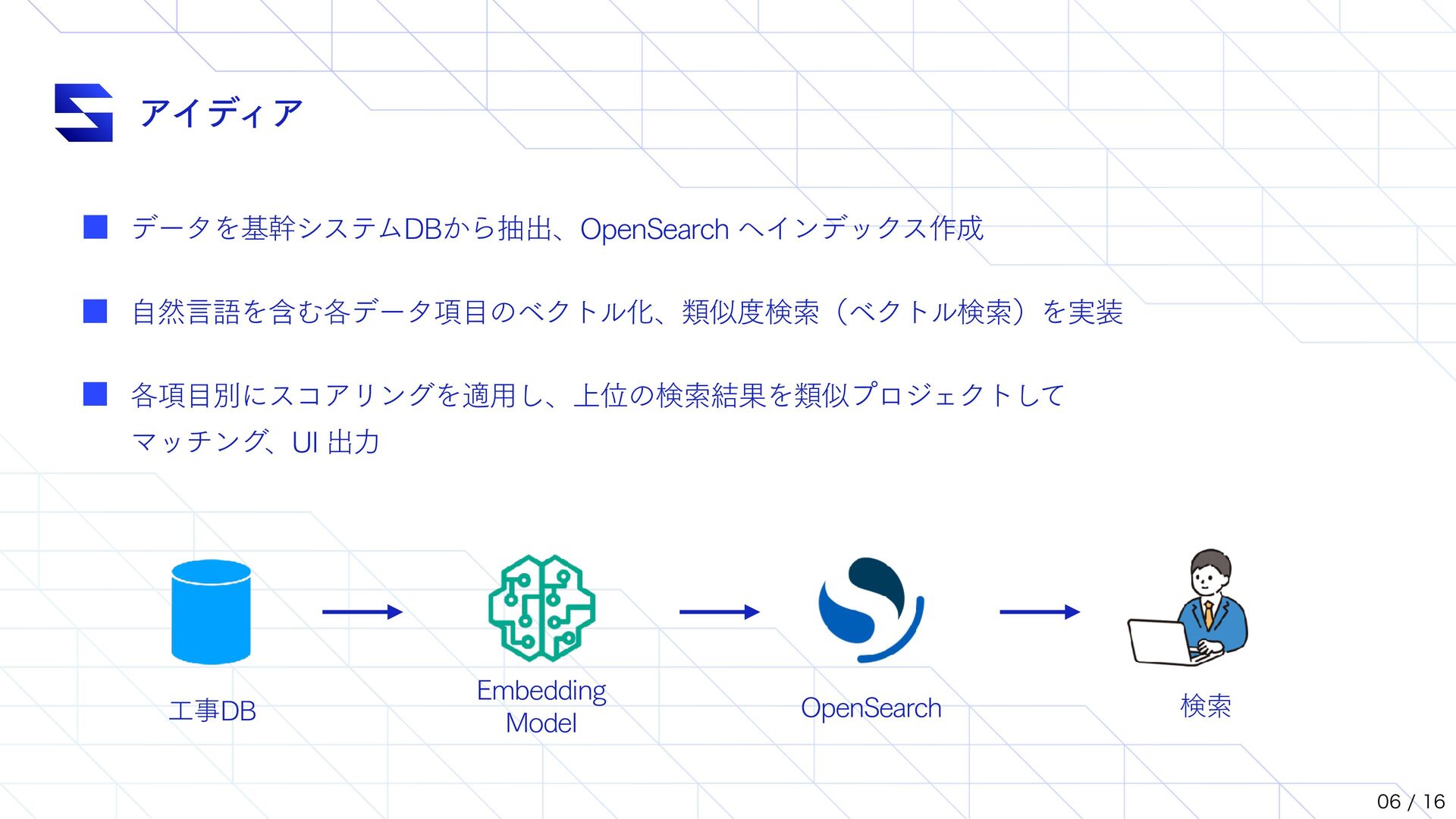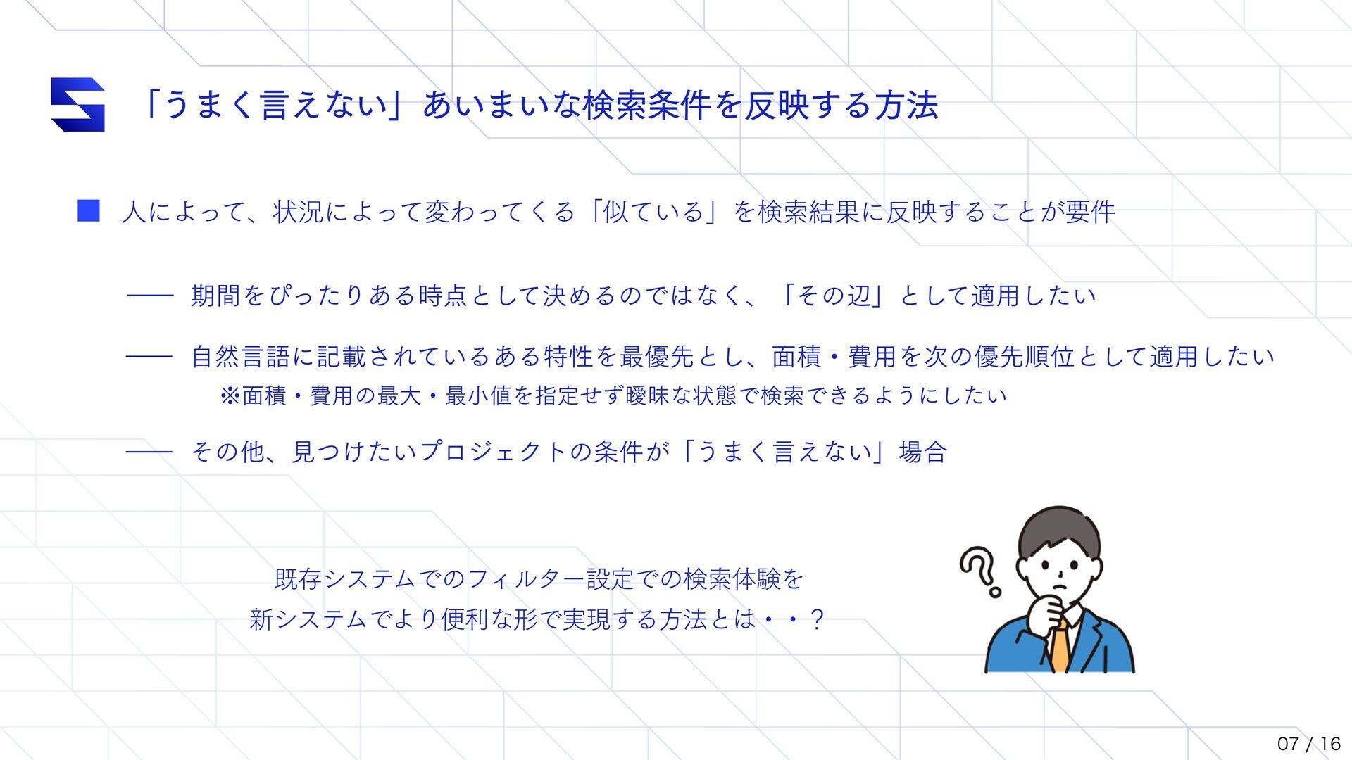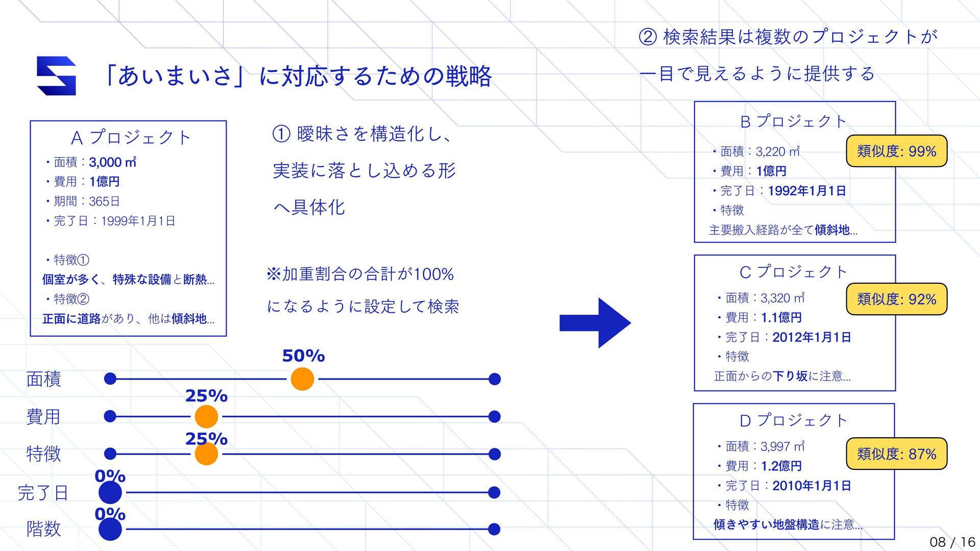 1000 ) { this.queryTemplate.query.bool.must.push({ function_score: { functions: [ { exp: { 'document.໘ੵ': { origin: origin, offset: offset, scale: scale, }, }, weight: weight }, ], }, }) return this } // ʮྨࣅʯΛө͢ΔͨΊͷϝιου // ࣄબޙɺεϥΠμʔͷॳظϩδοΫʹج͍ͮͯ // offset ͱ scale Λө͠·͢ // origin : ൺֱͷج४ͱͳΔ // offset : ج४ͱͷ͕ࠩ͜ͷҎͷ߹ɺείΞ͕ຬʢ1ʣͱΈͳ͞ΕΔൣғ // scale : ج४ͱͷ͕ࠩ scale Λ͑Δ߹ɺείΞʹө͞Εͳ͍ const searchQuery = new SearchQueryHelper() .setPageNumber(1) .setPageSize(25) .filterAreaWithScale(origin, offset, scale) .filterCostWithScale(origin, offset, scale) .filterPeriodWithScale(origin, offset, scale) .filterDeliveryDateWithScale(origin, offset, scale) .setSearchTextVector('ಛ', inputTextEmbedding.vector)