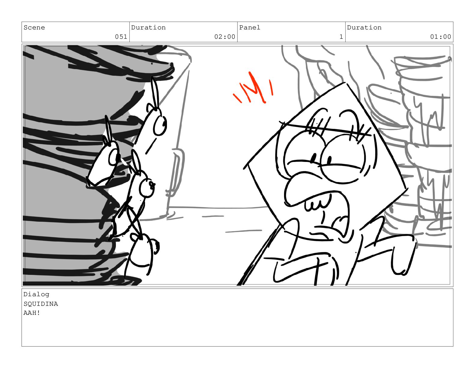 Scene 051 Duration 02:00 Panel 1 Duration 01:00 Dialog SQUIDINA
