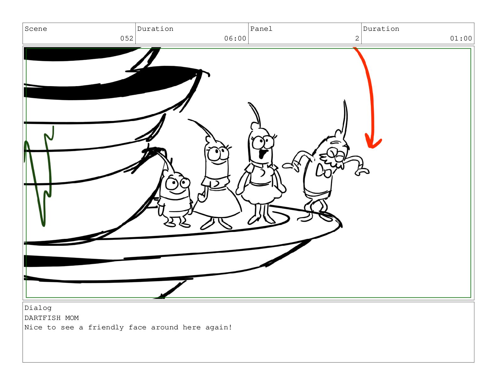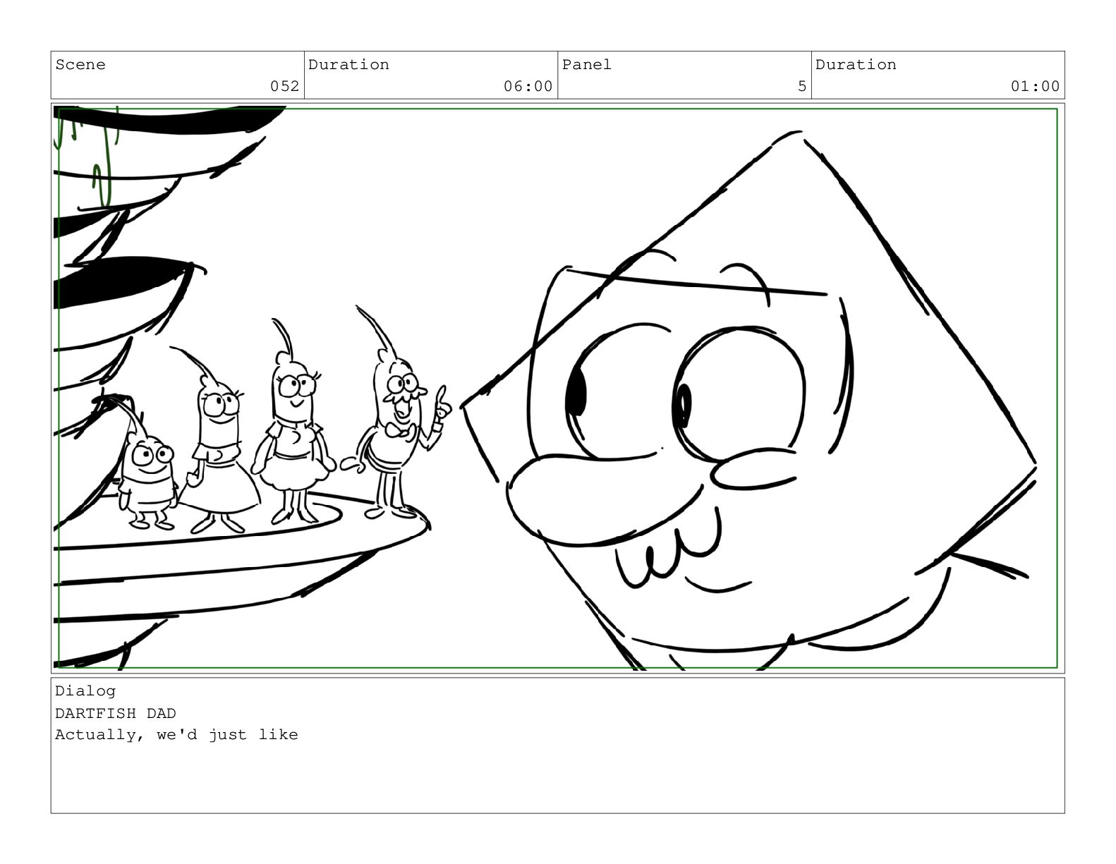 Scene 052 Duration 06:00 Panel 5 Duration 01:00 Dialog DARTFISH