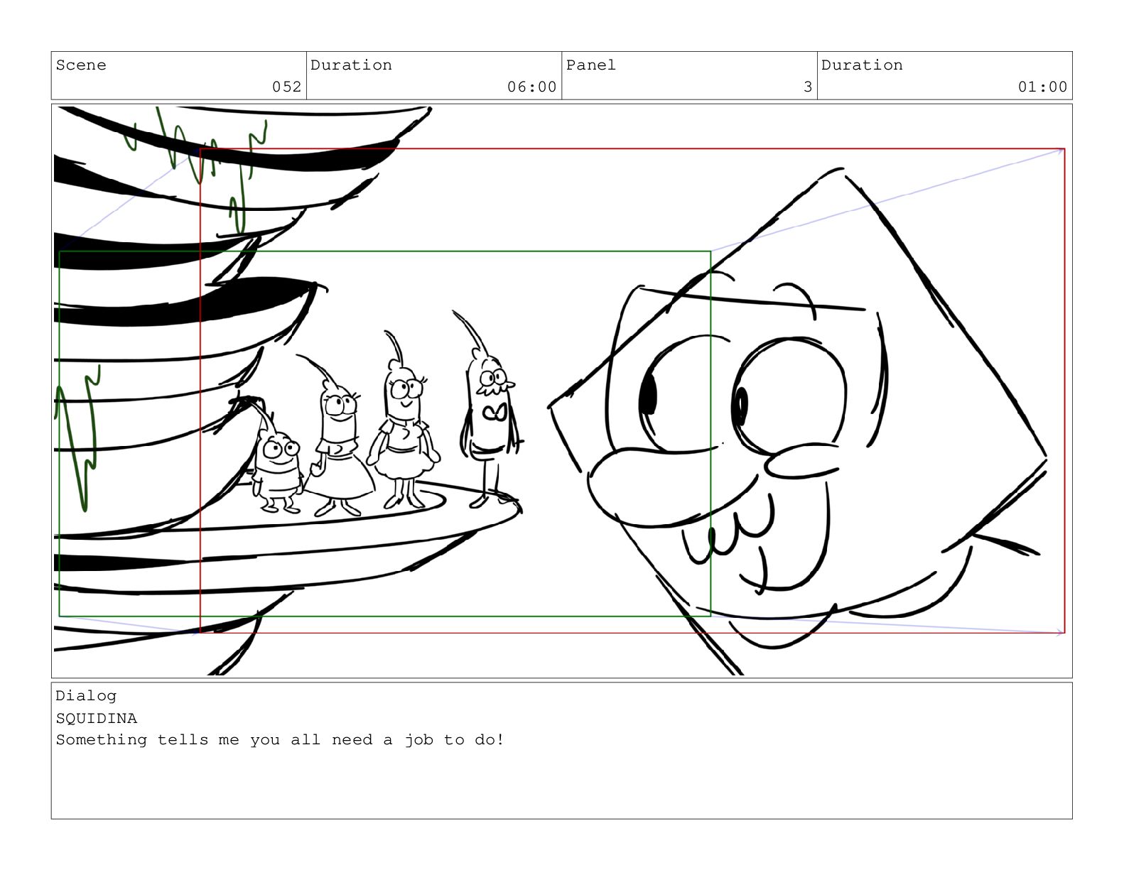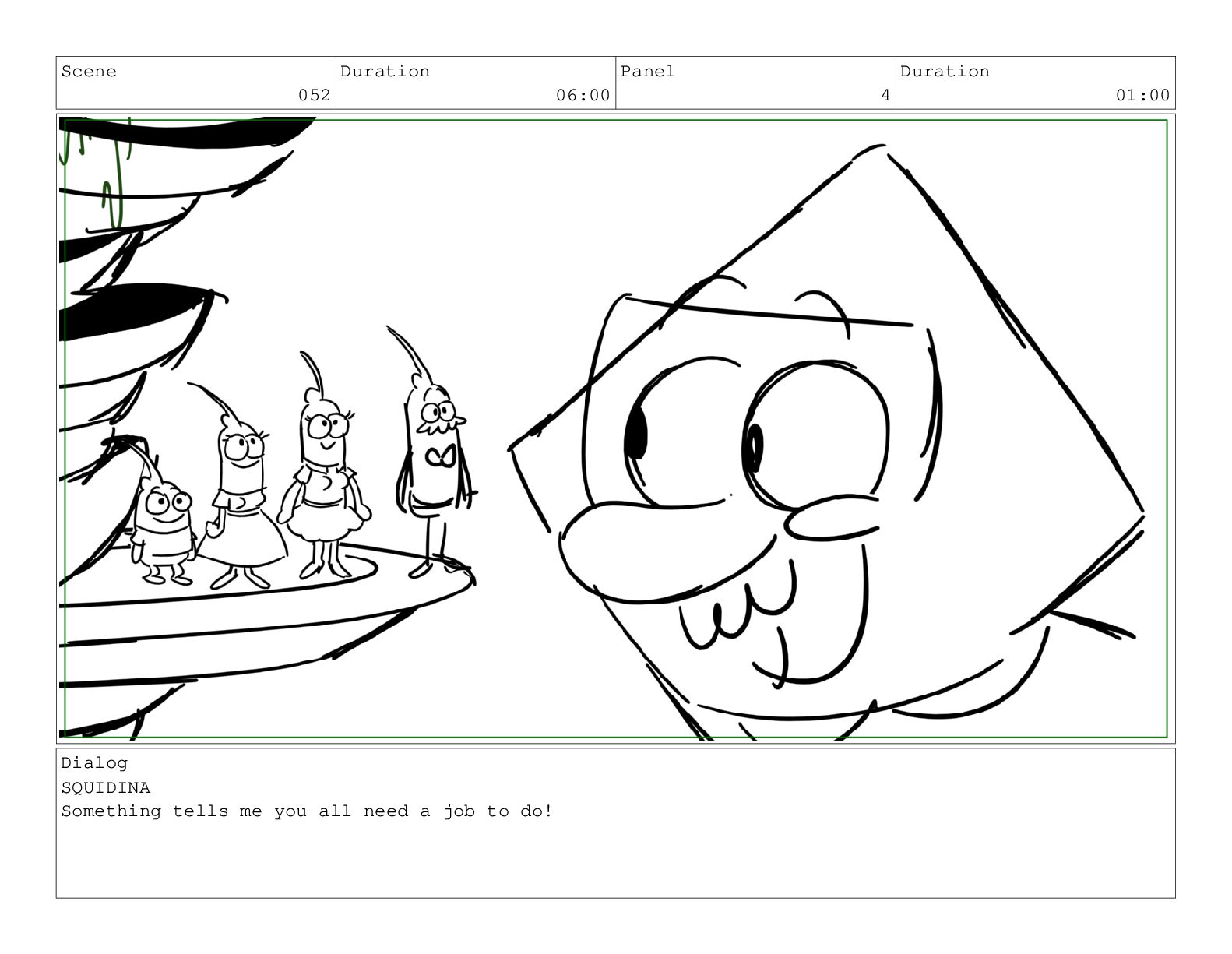 Scene 052 Duration 06:00 Panel 4 Duration 01:00 Dialog SQUIDINA