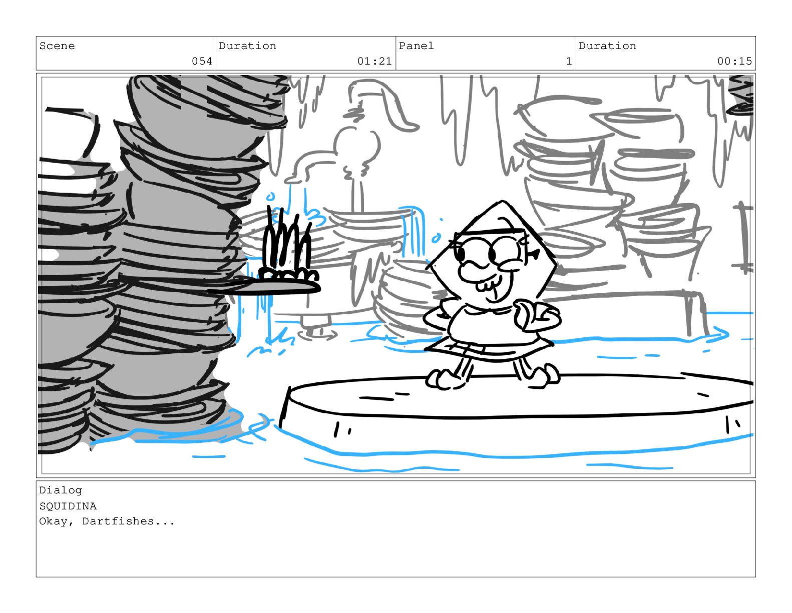 Scene 054 Duration 01:21 Panel 1 Duration 00:15 Dialog SQUIDINA