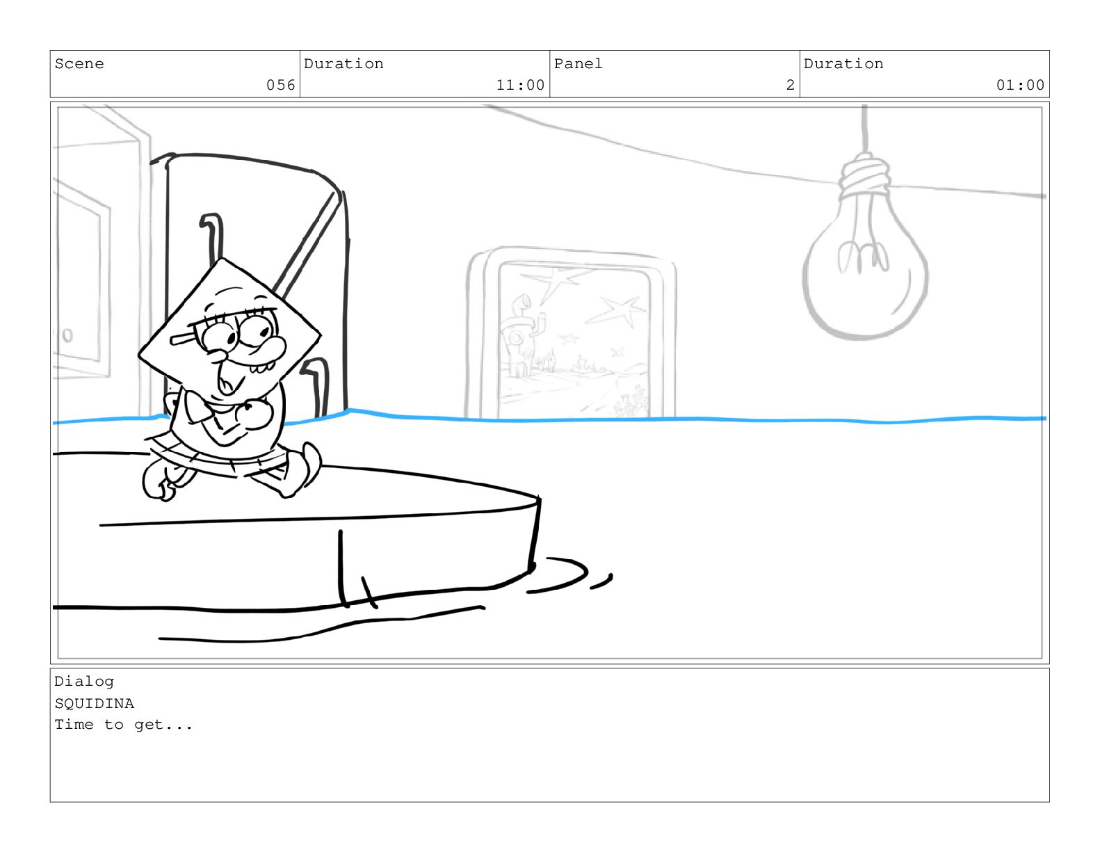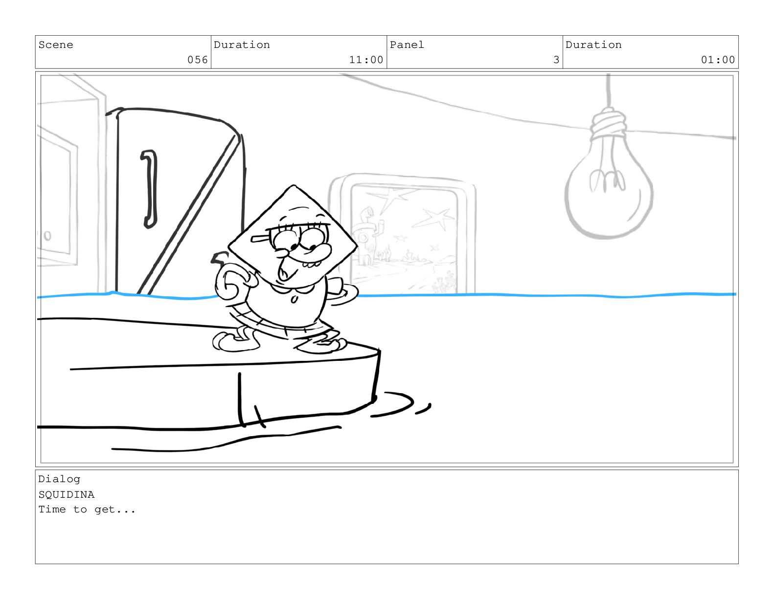 Scene 056 Duration 11:00 Panel 3 Duration 01:00 Dialog SQUIDINA