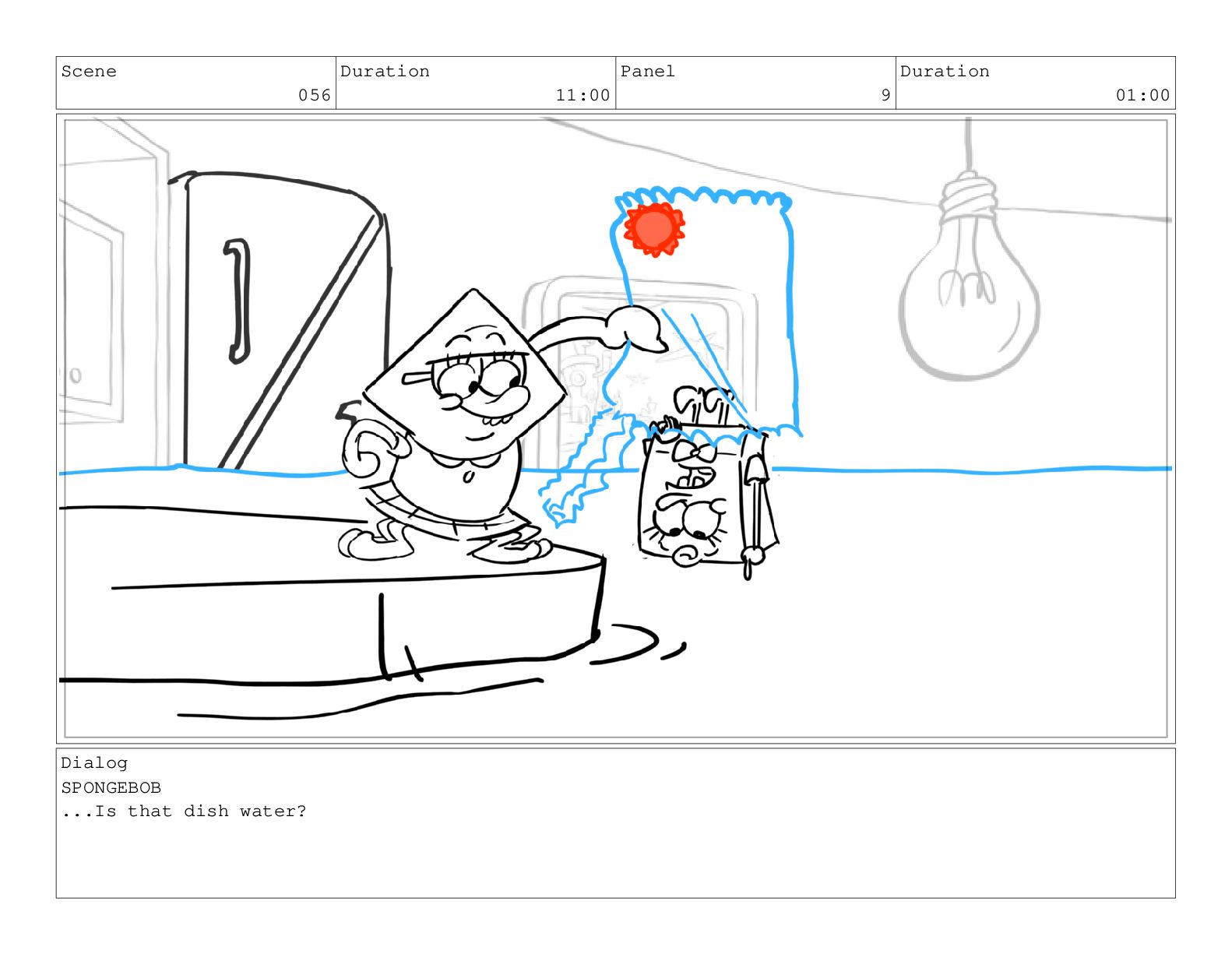 Scene 056 Duration 11:00 Panel 9 Duration 01:00 Dialog SPONGEBOB