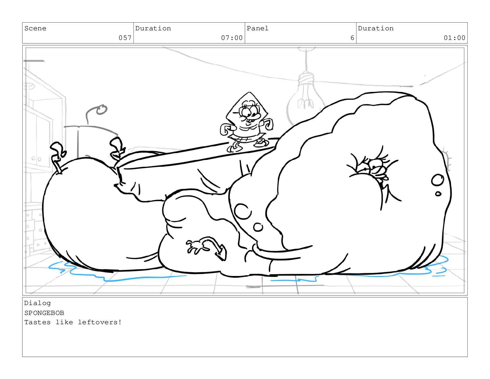 Scene 057 Duration 07:00 Panel 6 Duration 01:00 Dialog SPONGEBOB