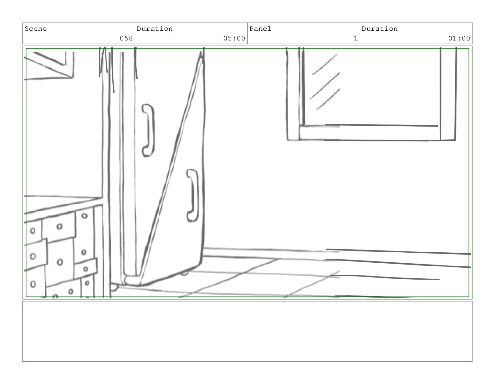 Scene 058 Duration 05:00 Panel 1 Duration 01:00
