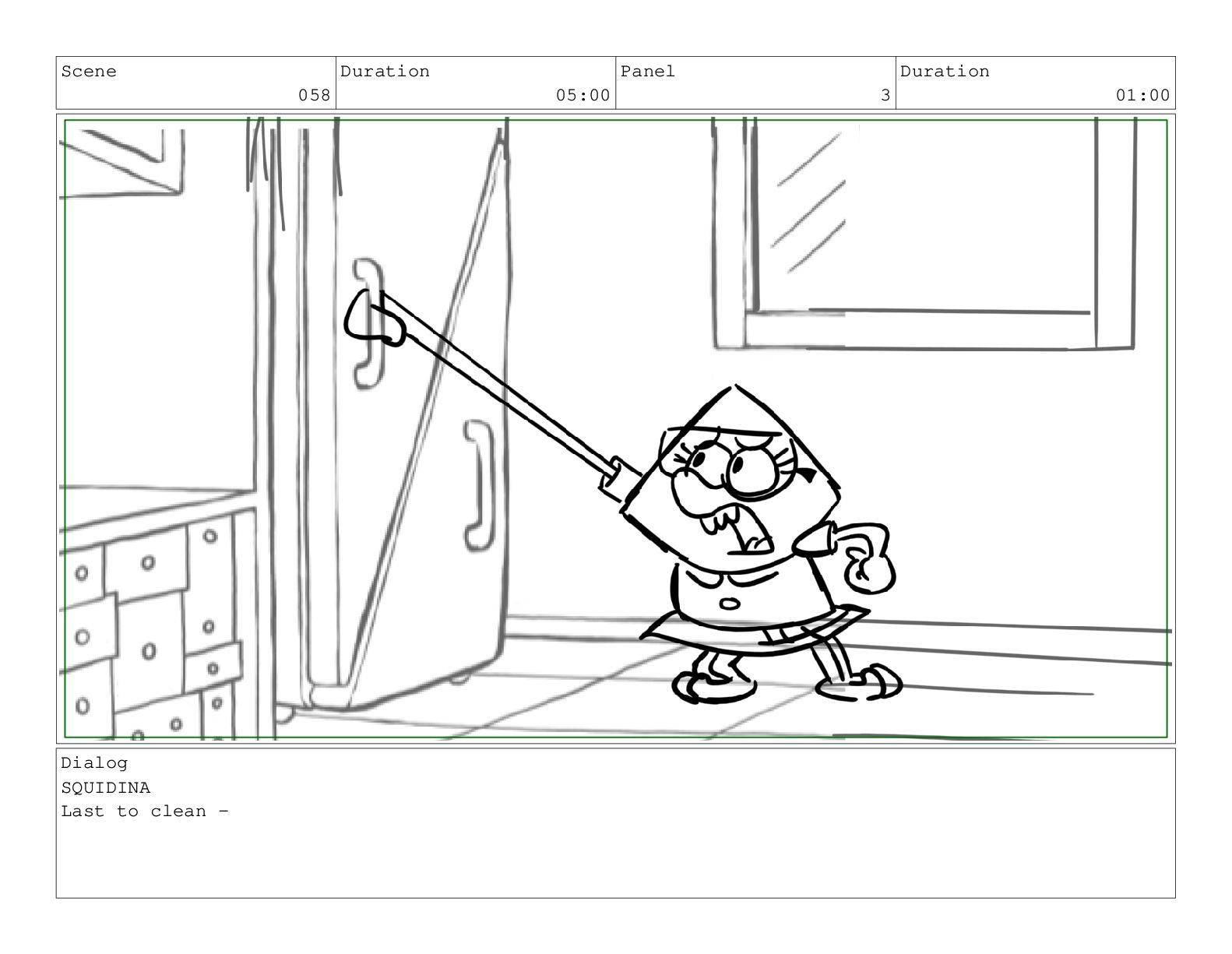 Scene 058 Duration 05:00 Panel 4 Duration 01:00 Dialog SQUIDINA