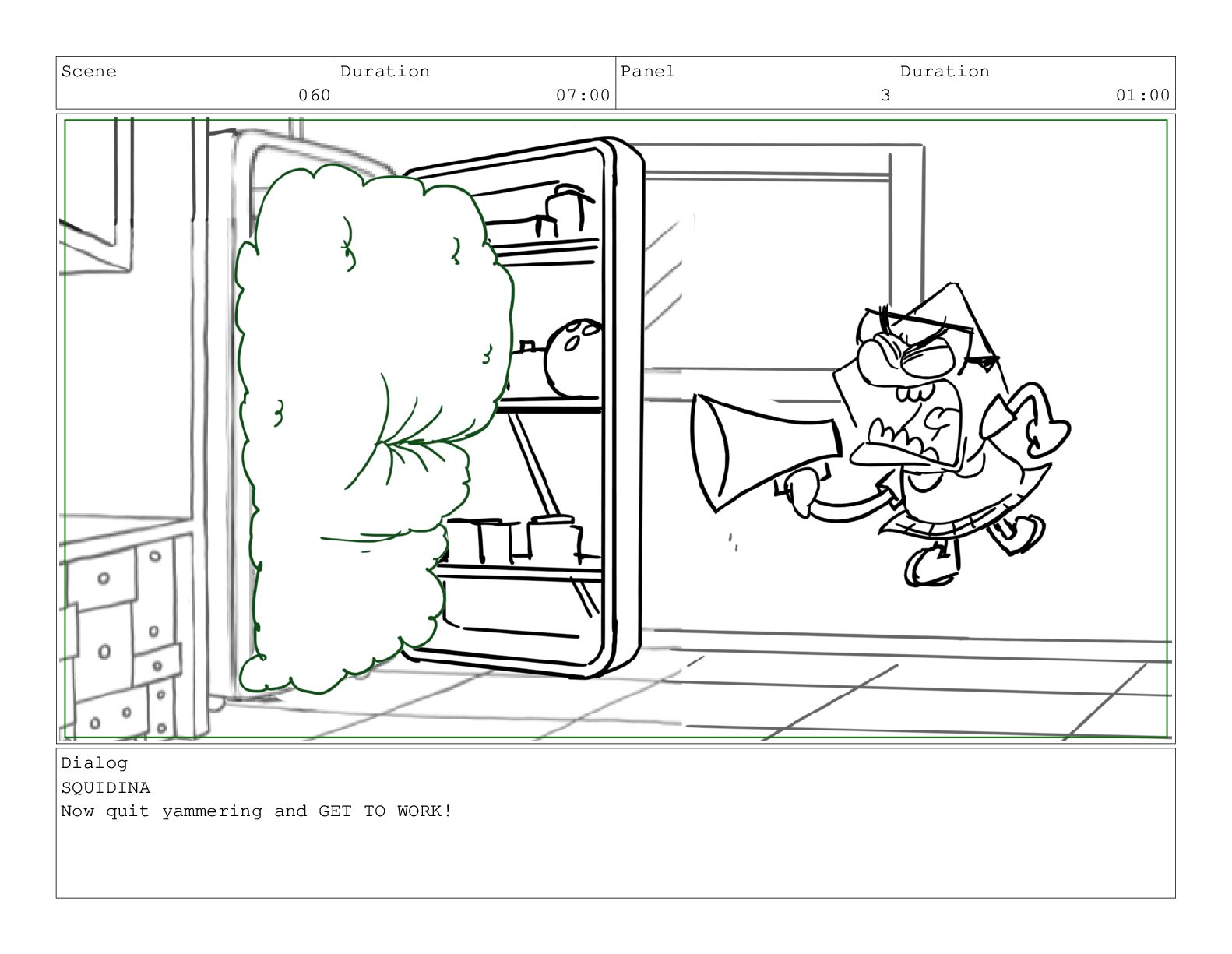 Scene 060 Duration 07:00 Panel 3 Duration 01:00 Dialog SQUIDINA
