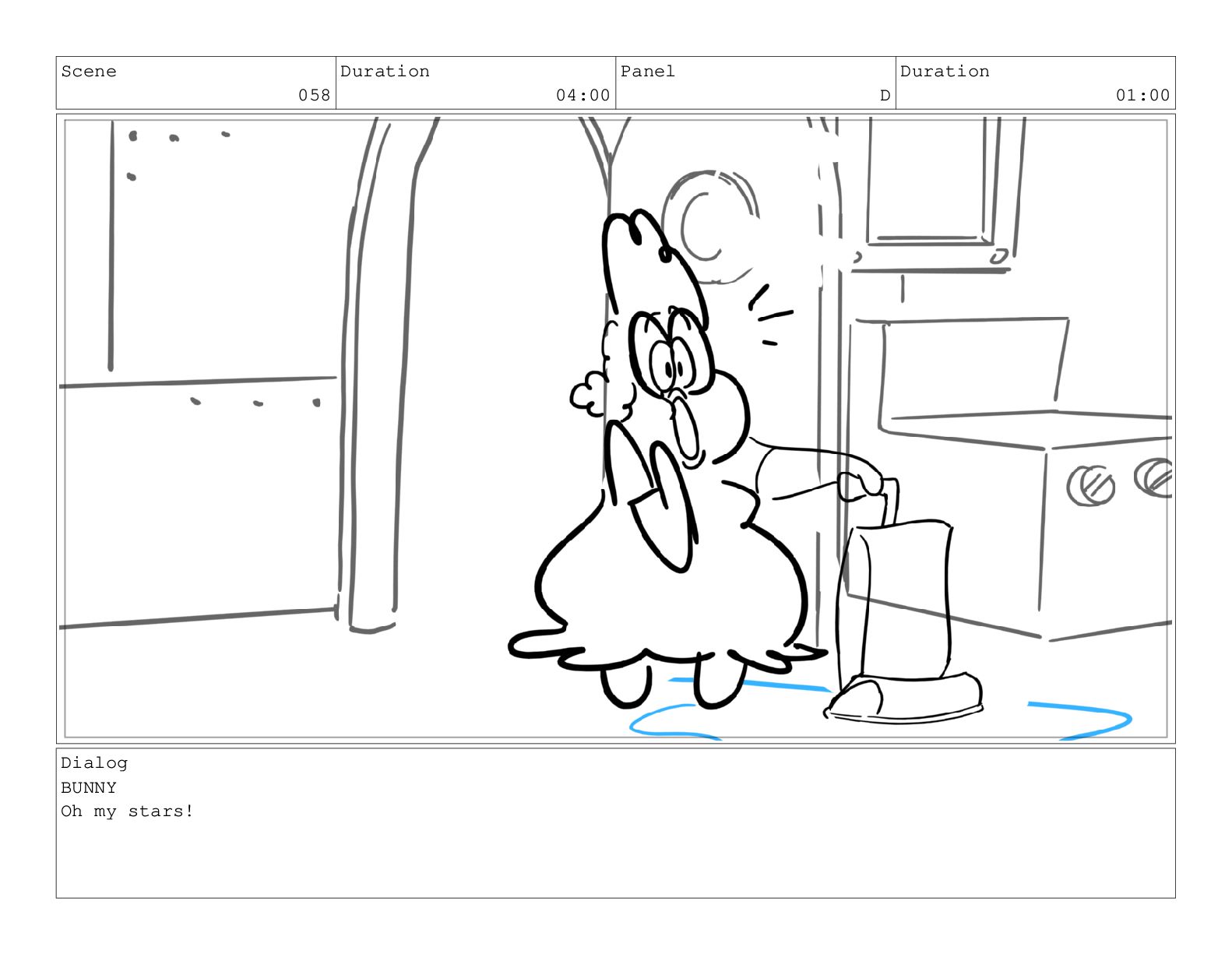 Scene 058 Duration 04:00 Panel D Duration 01:00 Dialog BUNNY