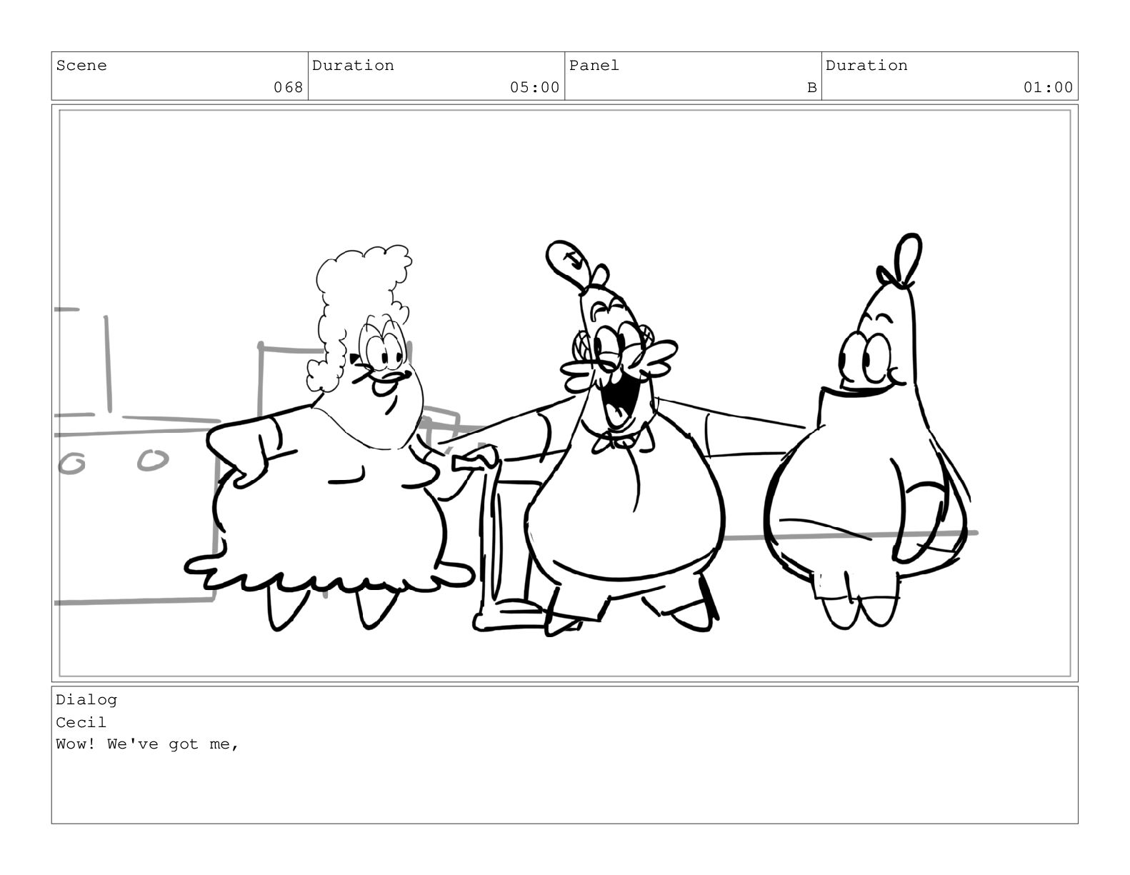 Scene 068 Duration 05:00 Panel A Duration 01:00 Dialog Cecil