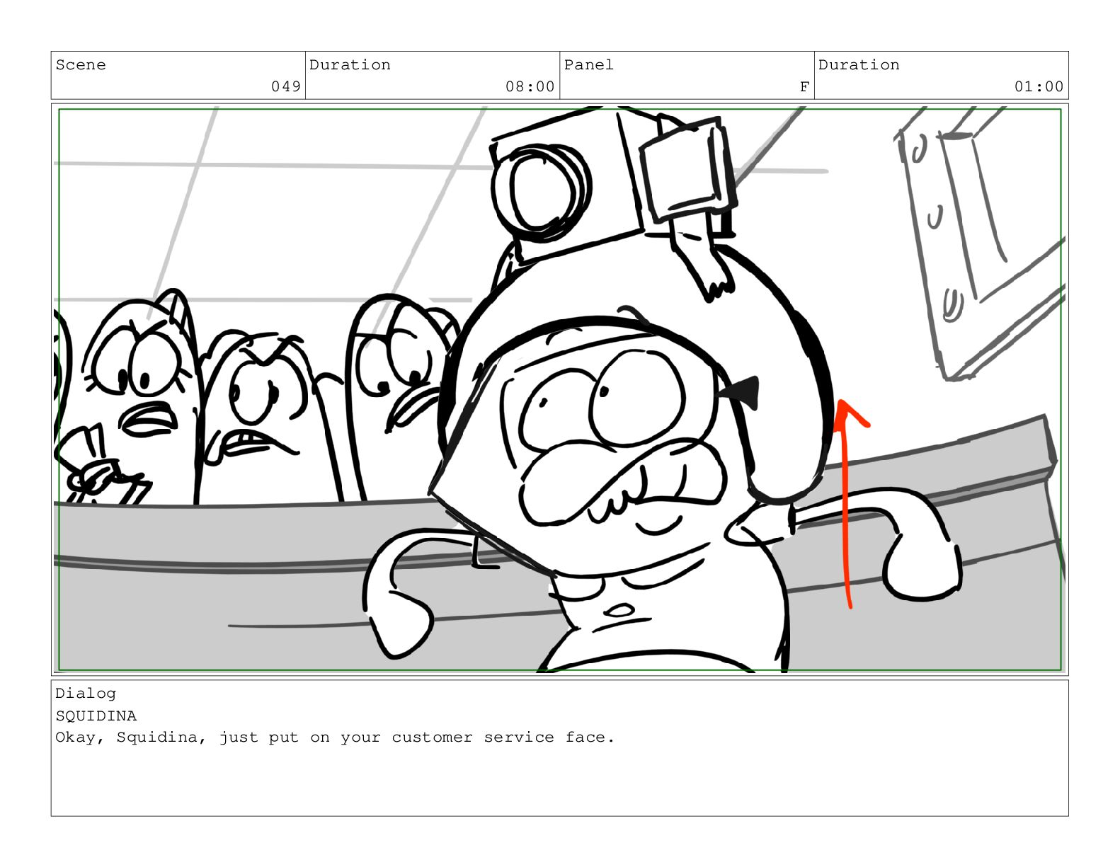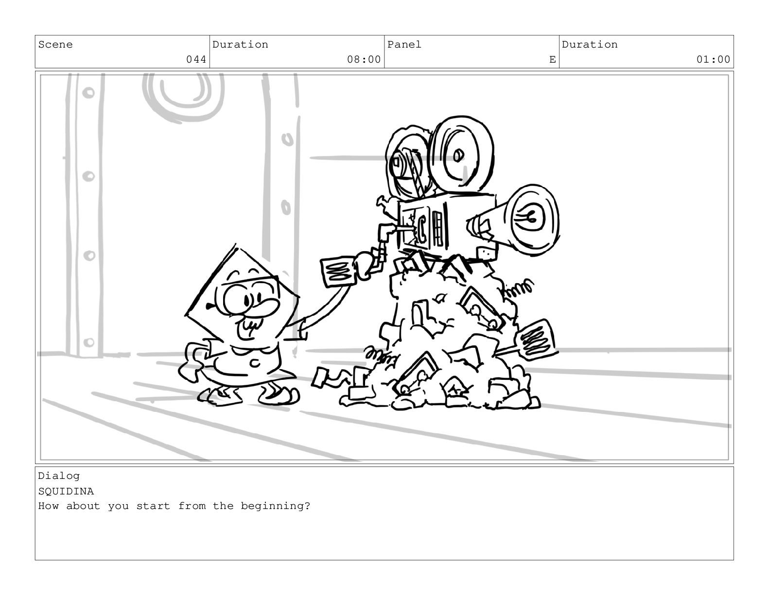Scene 049 Duration 08:00 Panel F Duration 01:00 Dialog SQUIDINA