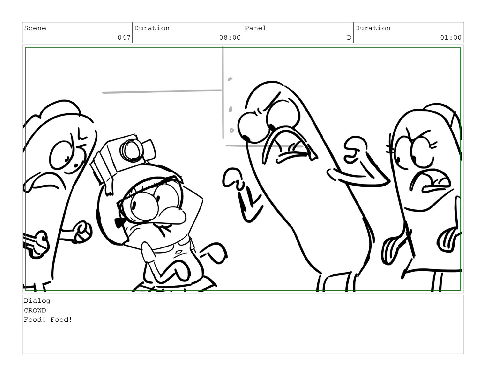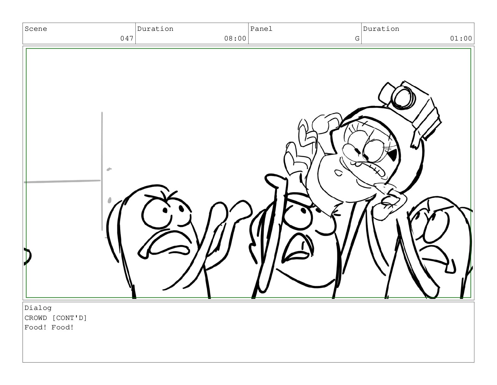 Scene 047 Duration 08:00 Panel H Duration 01:00 Dialog CROWD