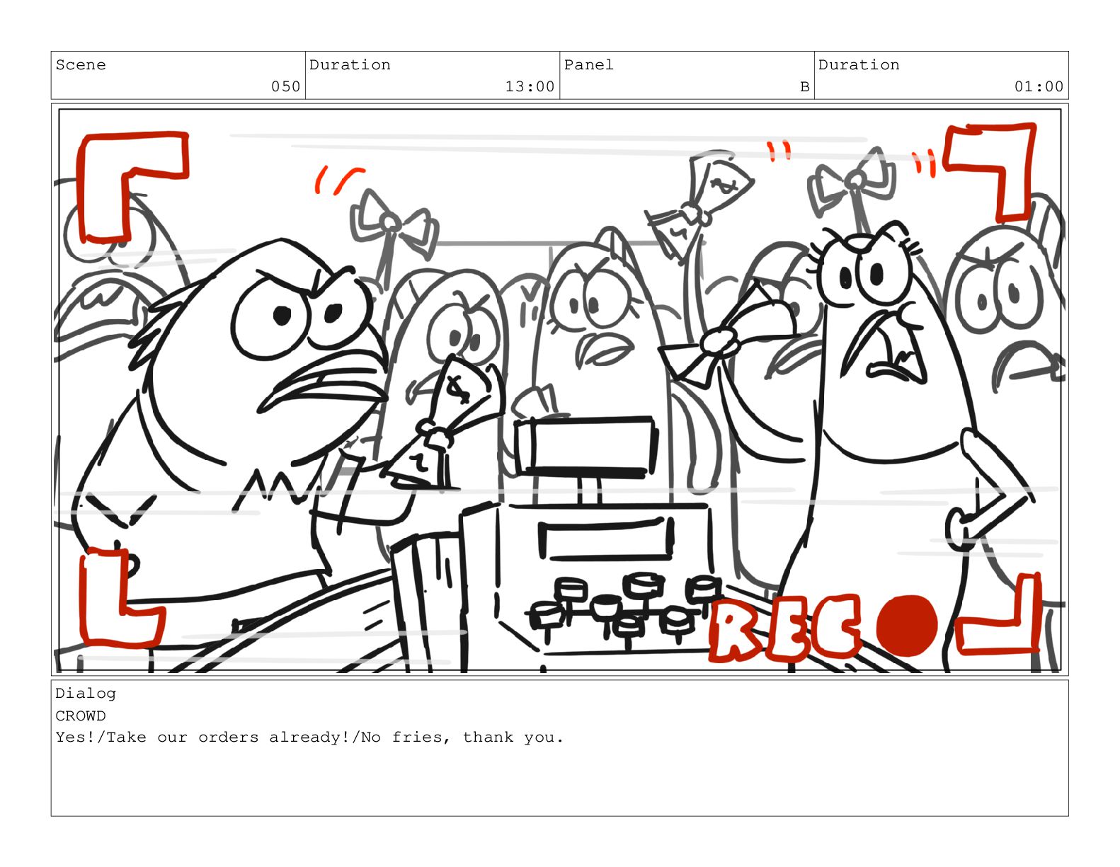 Scene 050 Duration 13:00 Panel B Duration 01:00 Dialog CROWD