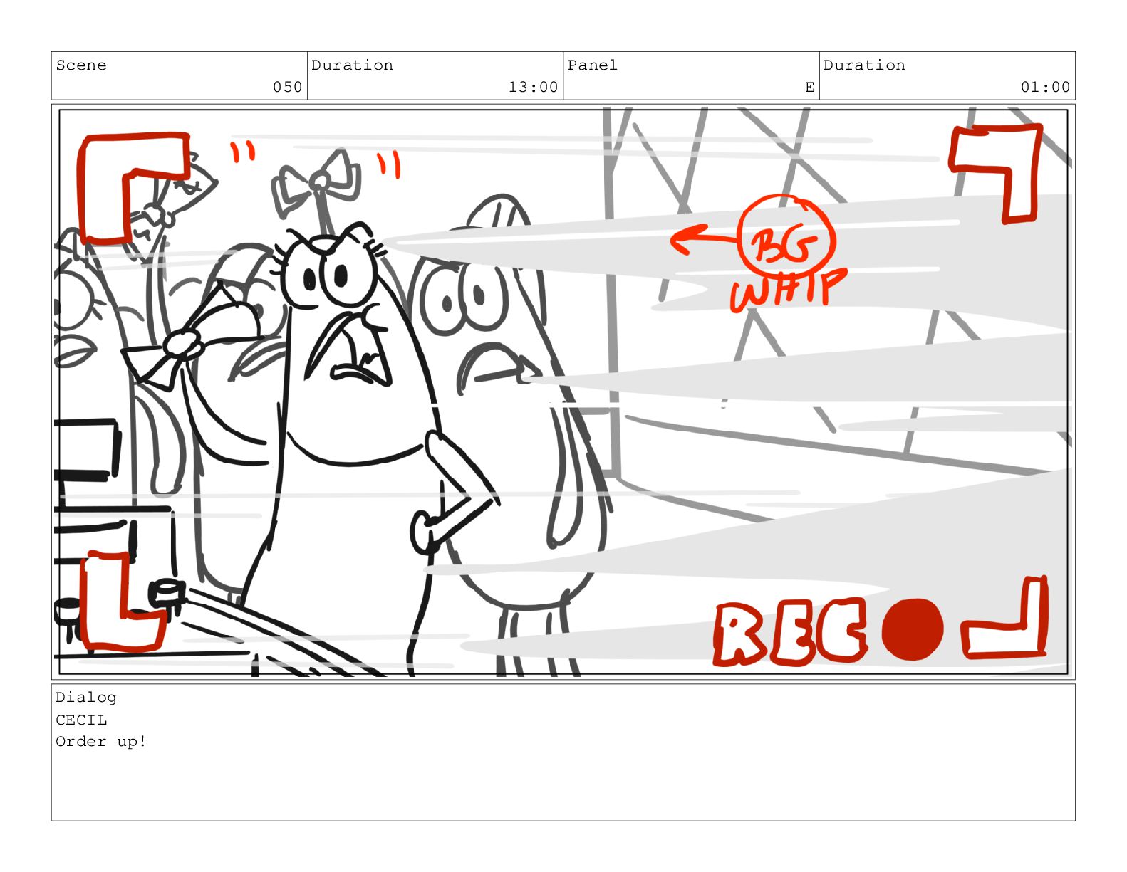 Scene 050 Duration 13:00 Panel E Duration 01:00 Dialog CECIL