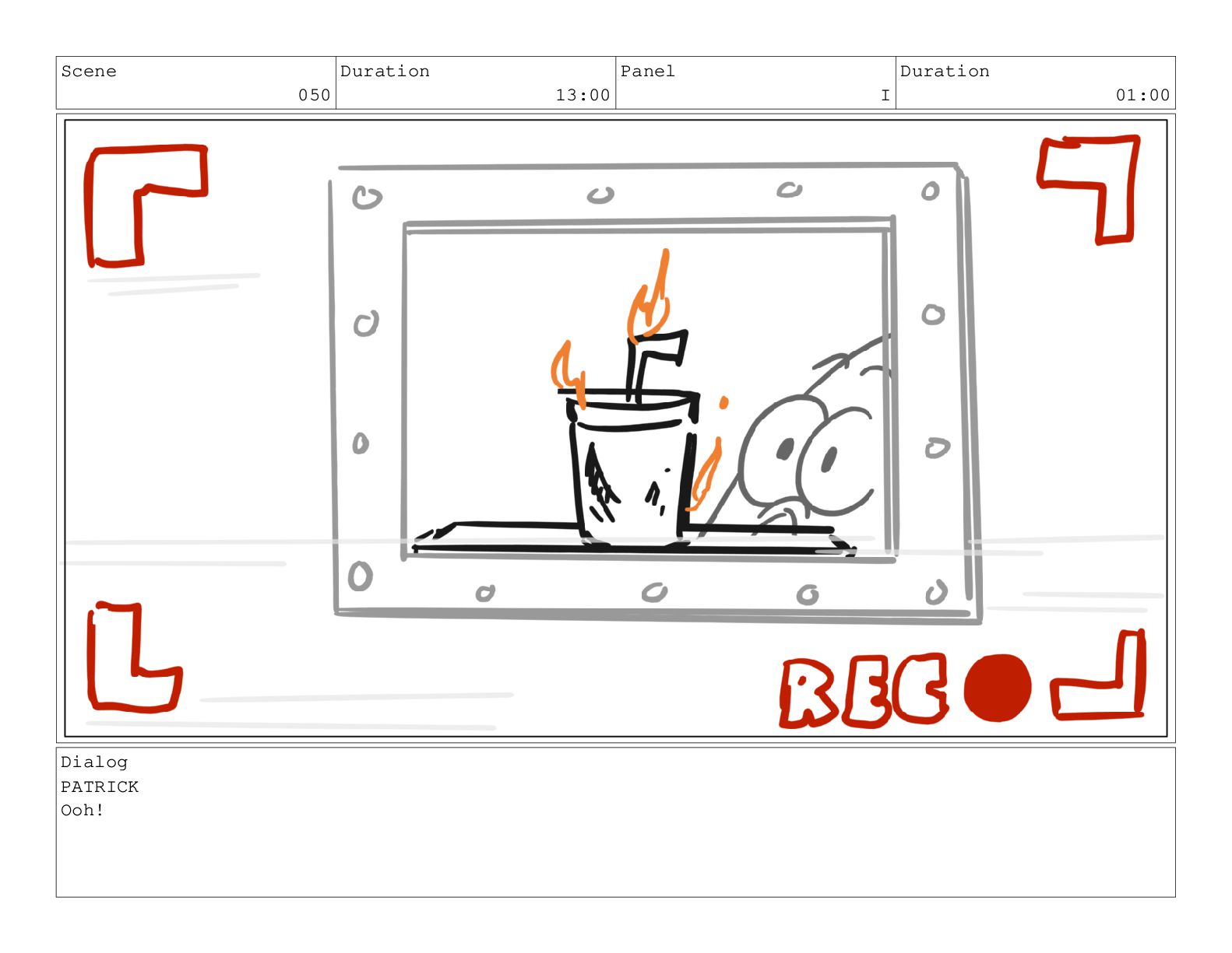 Scene 050 Duration 13:00 Panel L Duration 01:00 Dialog PATRICK