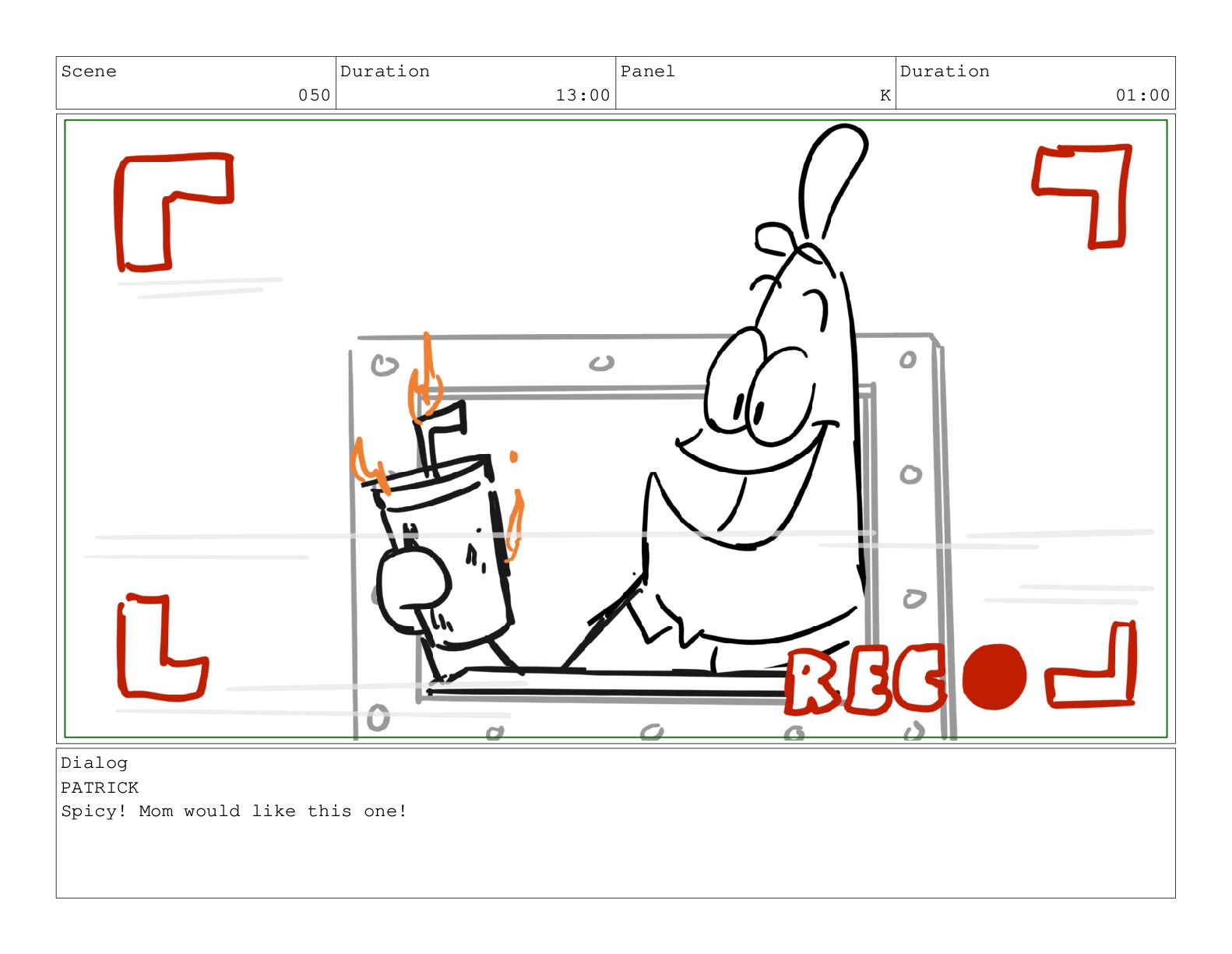Scene 050 Duration 13:00 Panel K Duration 01:00 Dialog PATRICK