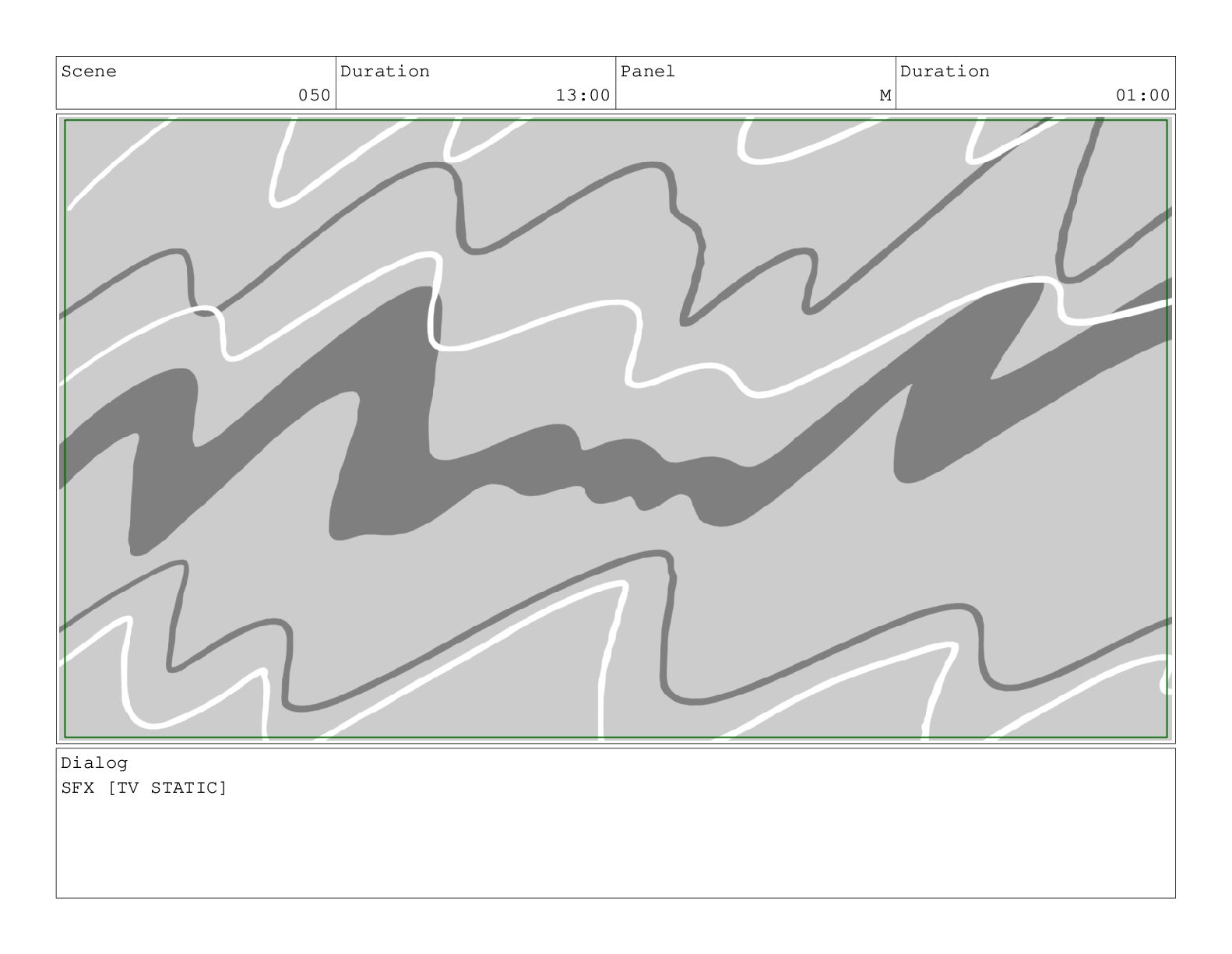 Scene 050 Duration 13:00 Panel M Duration 01:00 Dialog SFX