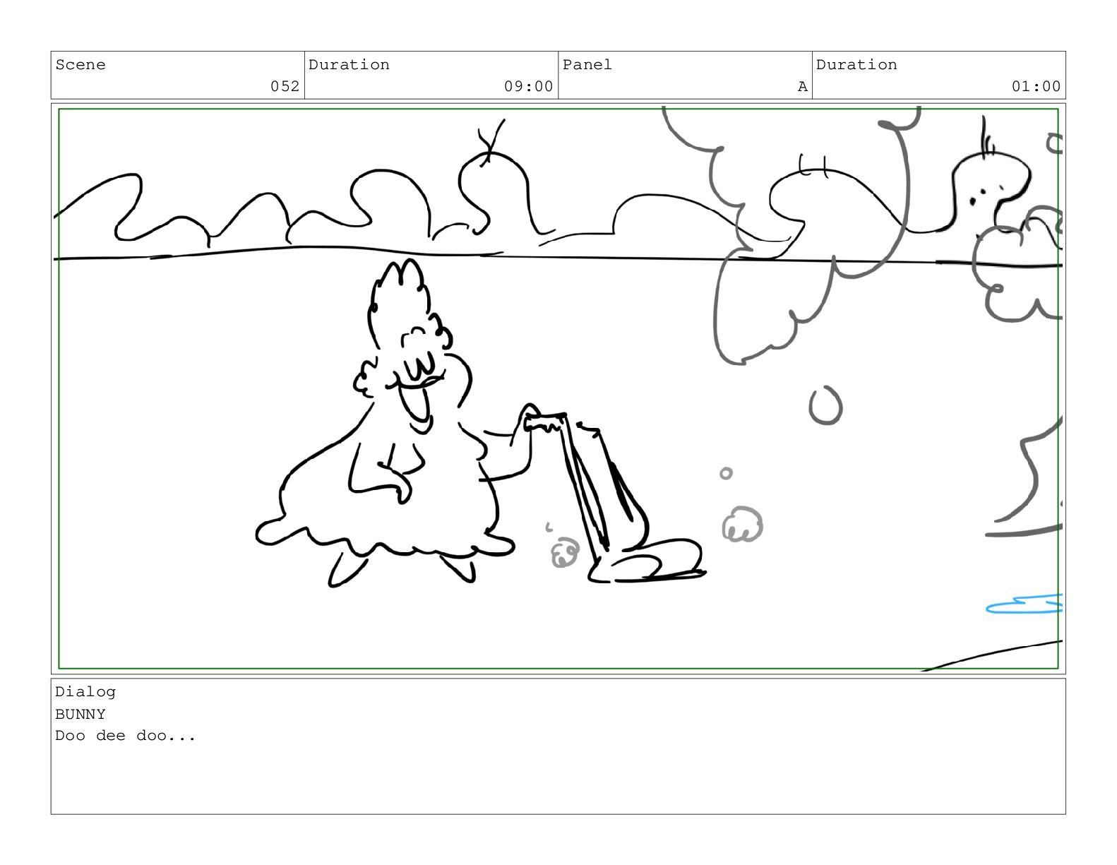 Scene 052 Duration 09:00 Panel A Duration 01:00 Dialog BUNNY