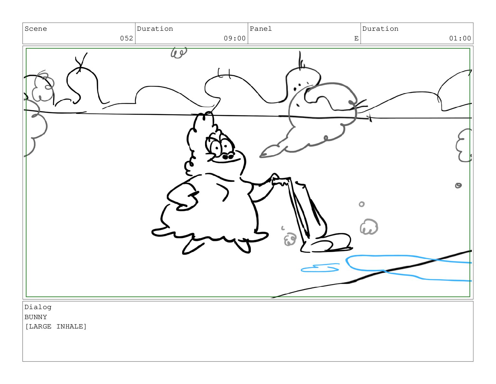 Scene 052 Duration 09:00 Panel E Duration 01:00 Dialog BUNNY