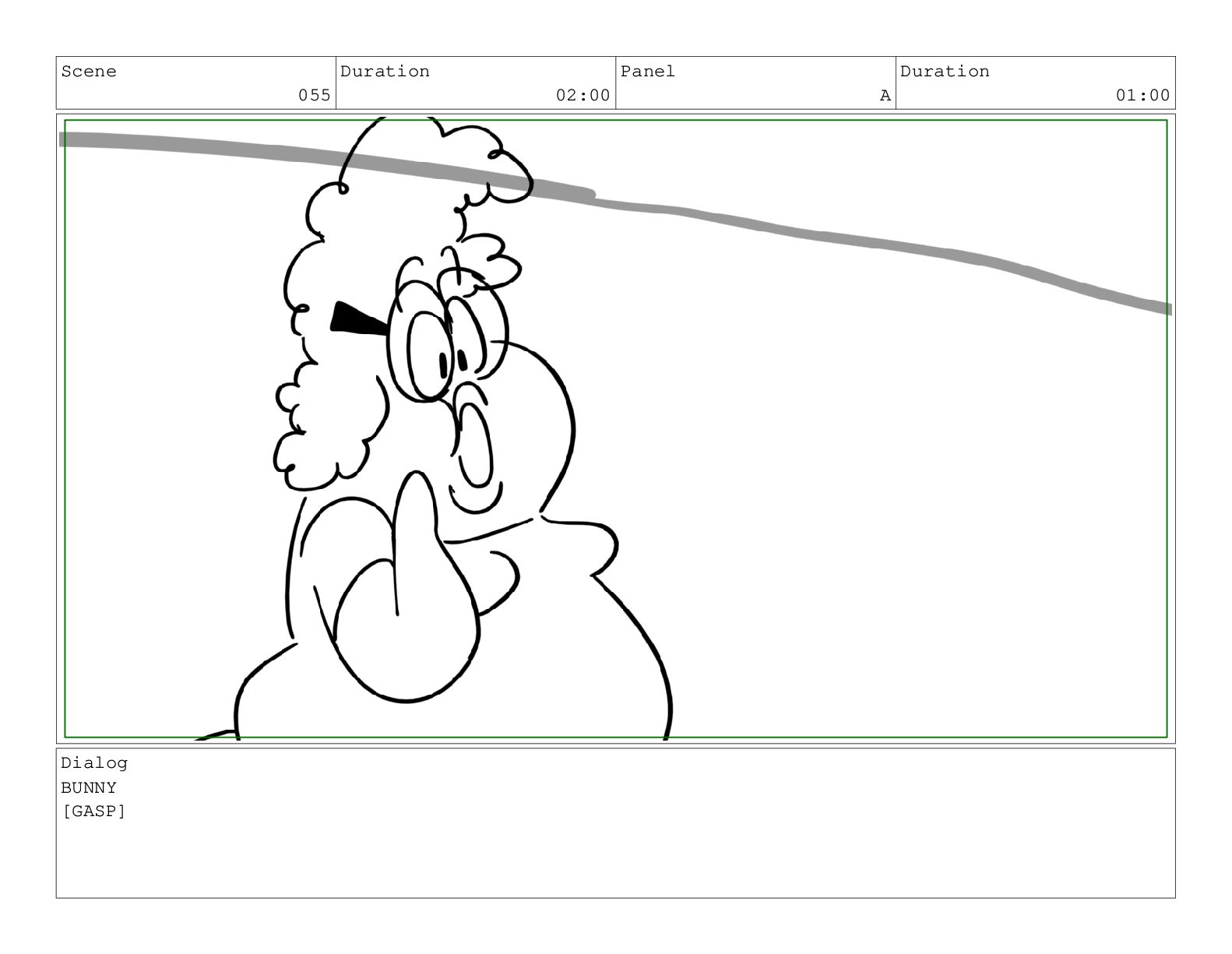 Scene 055 Duration 02:00 Panel A Duration 01:00 Dialog BUNNY