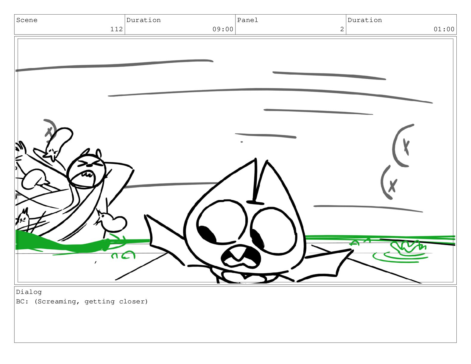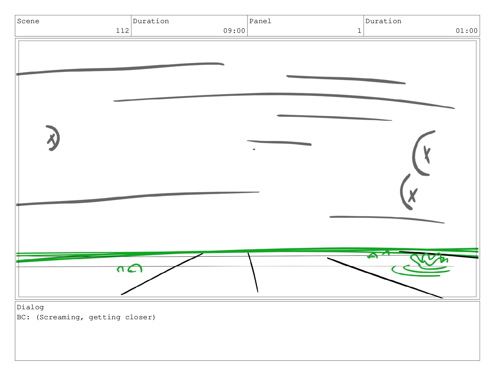 Scene 112 Duration 09:00 Panel 2 Duration 01:00 Dialog BC: