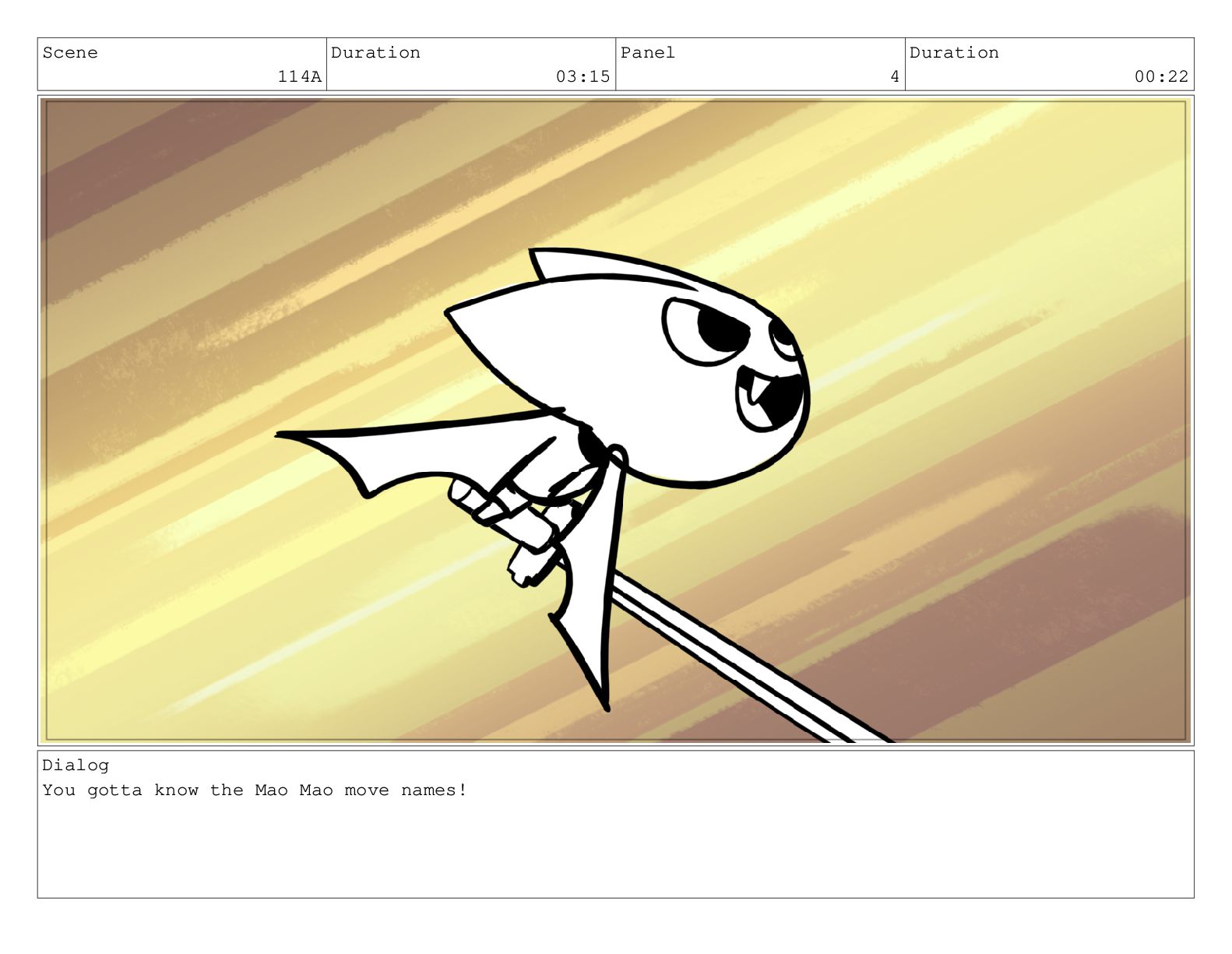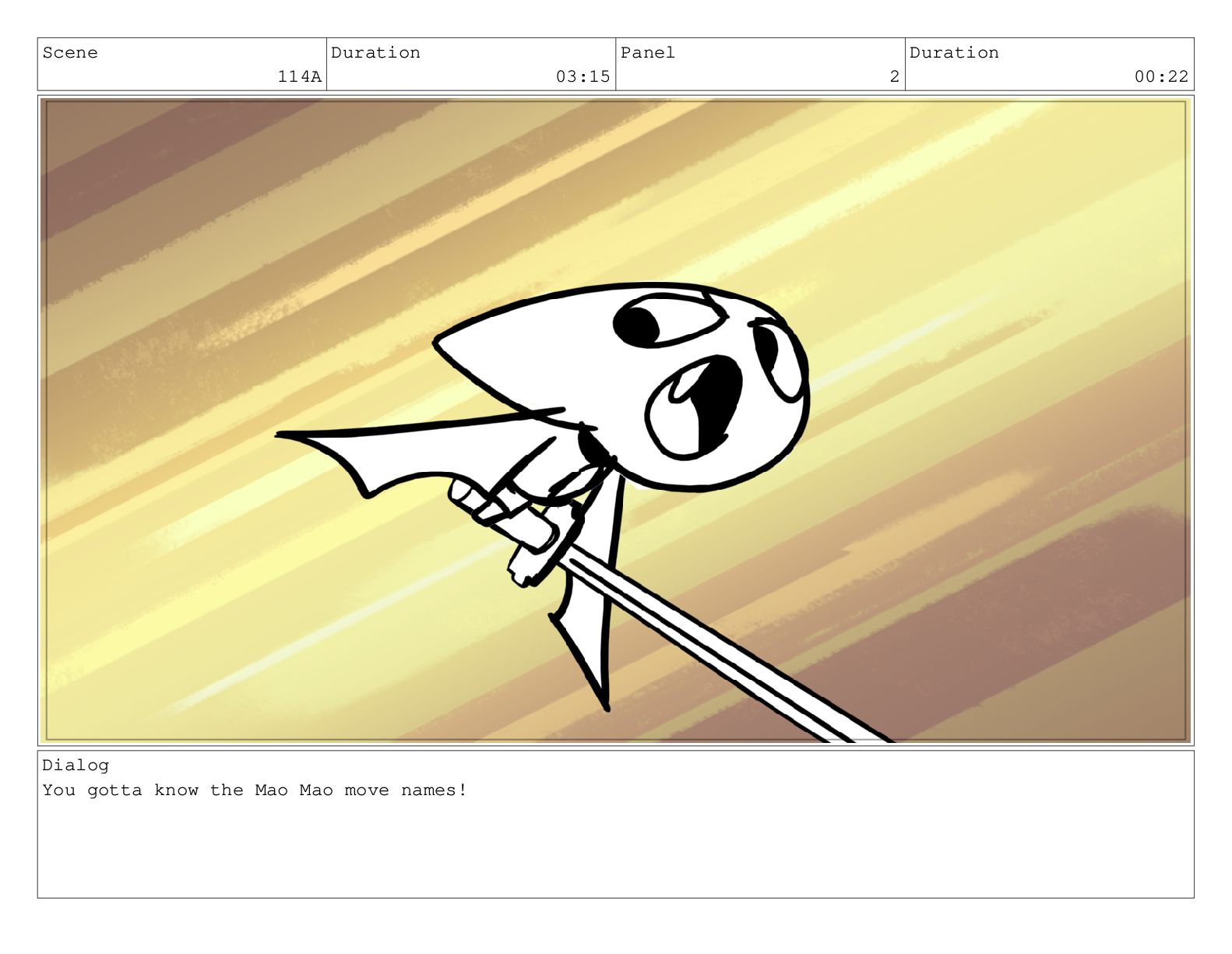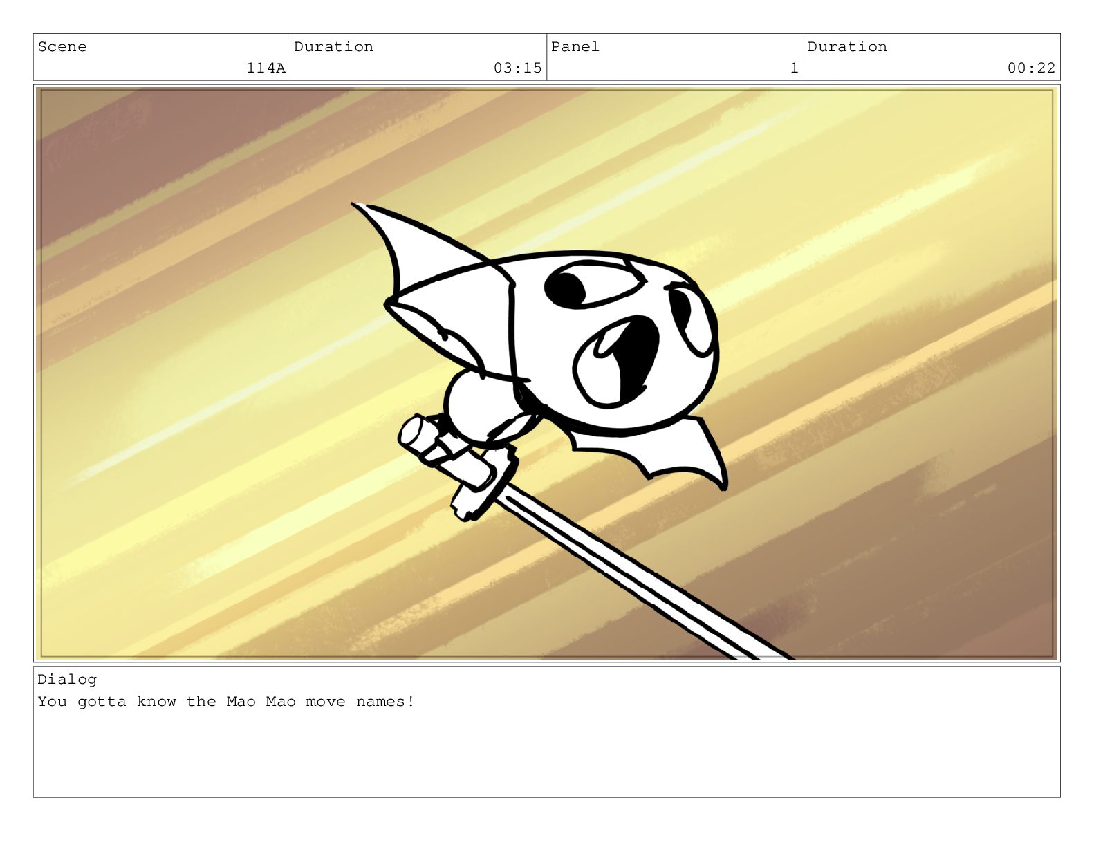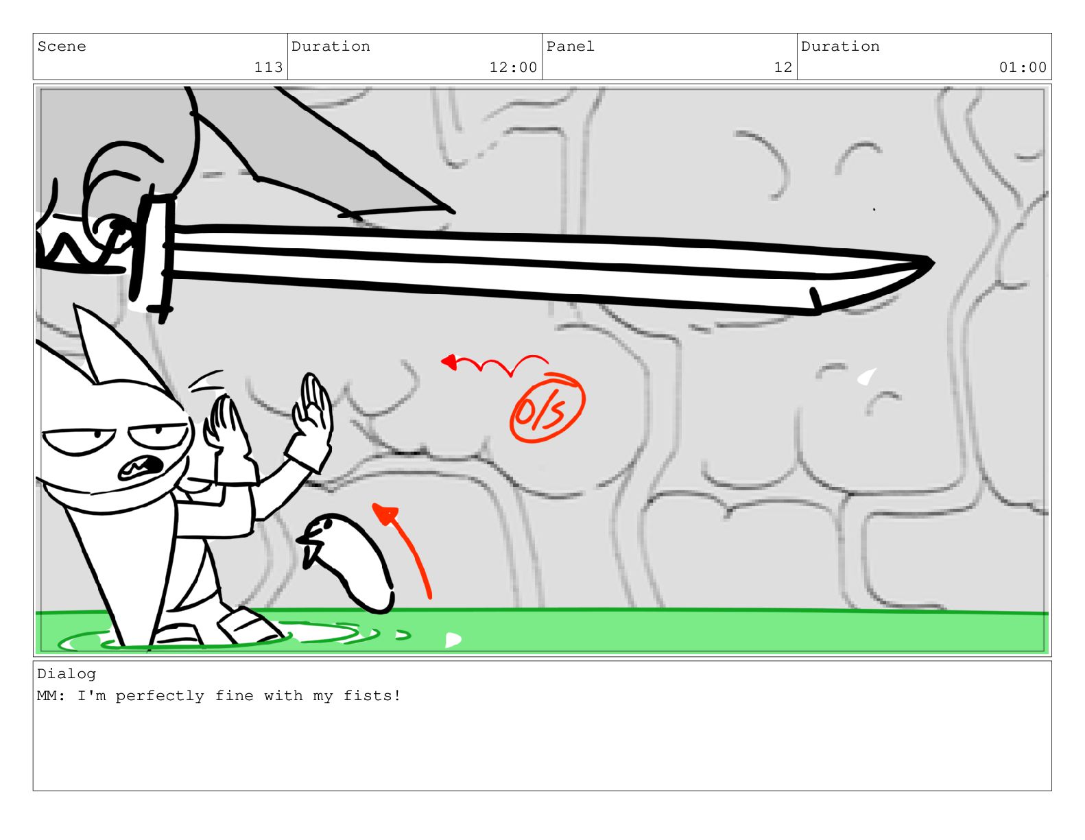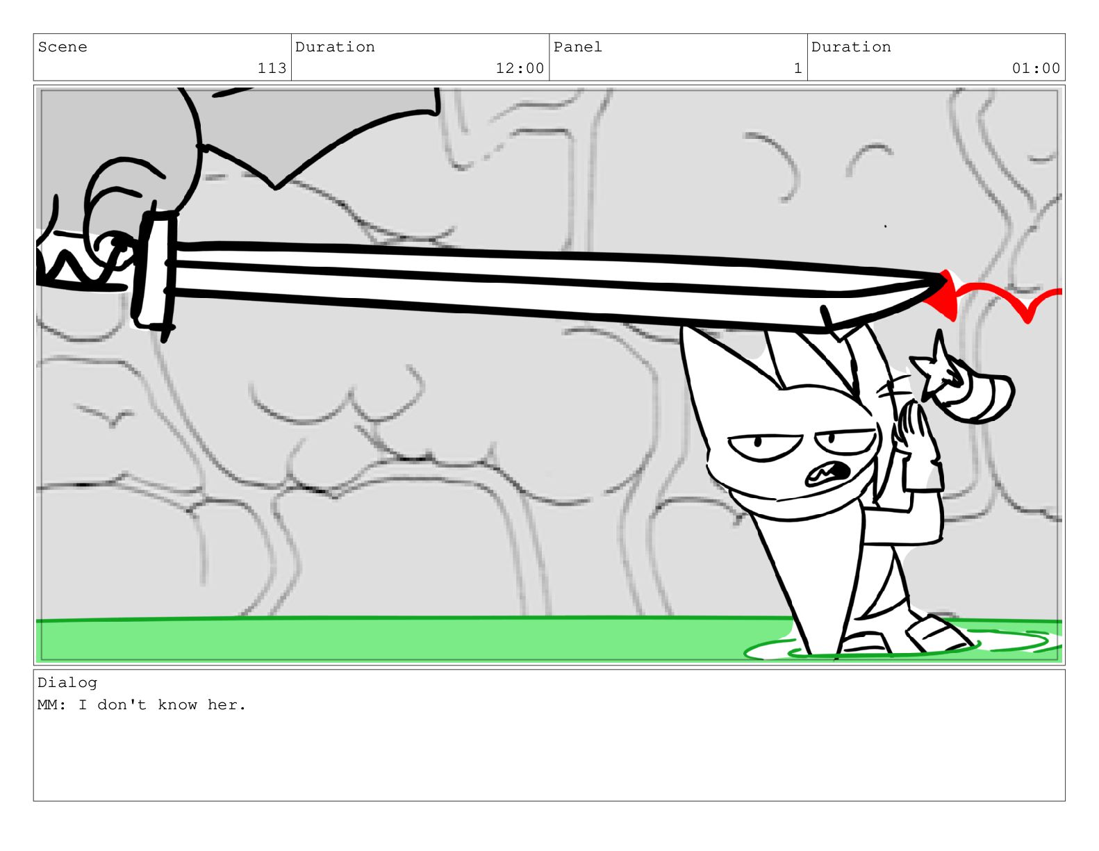 Scene 113 Duration 12:00 Panel 1 Duration 01:00 Dialog MM: