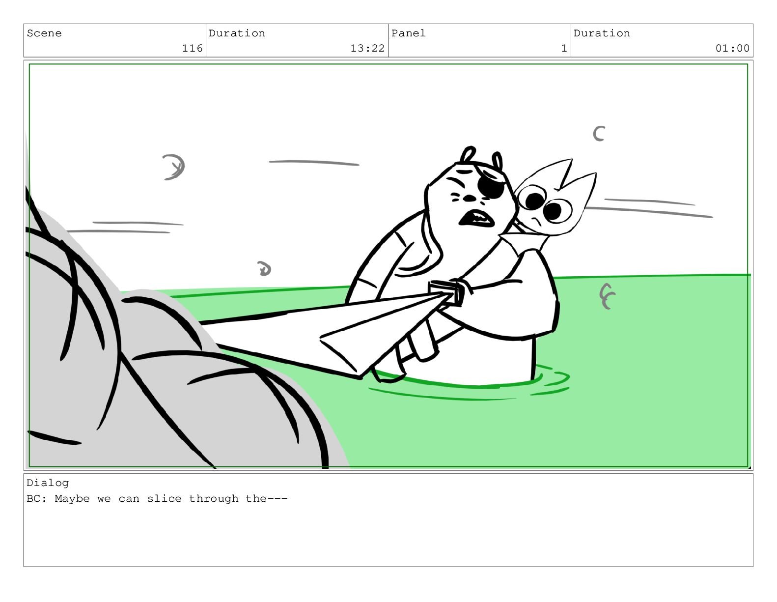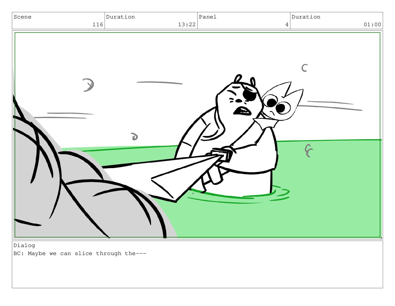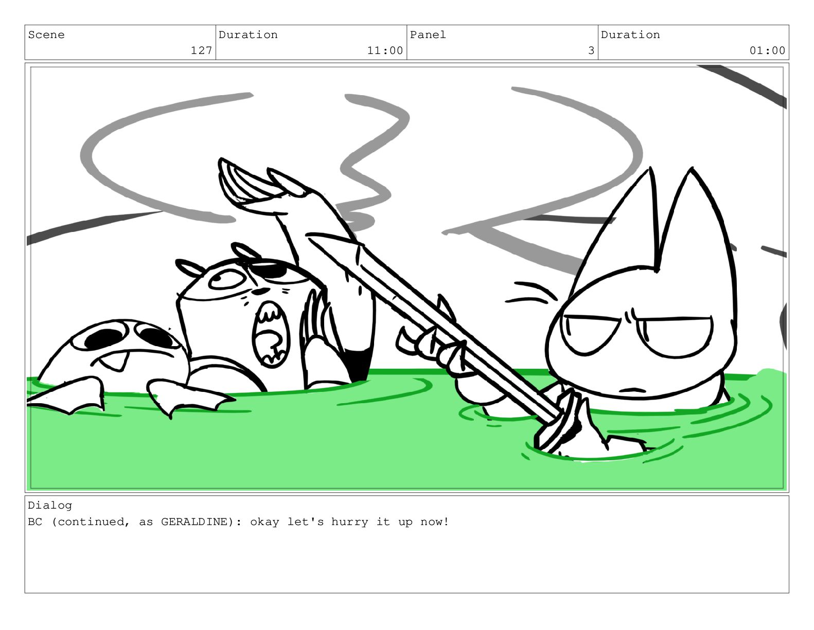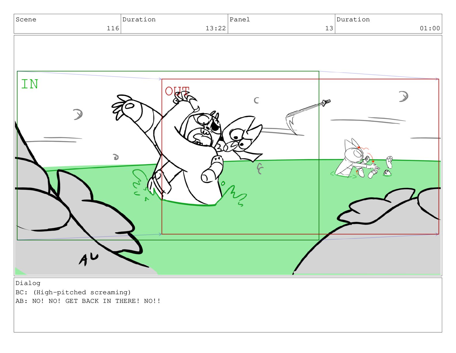 Scene 136 Duration 12:00 Panel 11 Duration 01:00 Dialog BC: