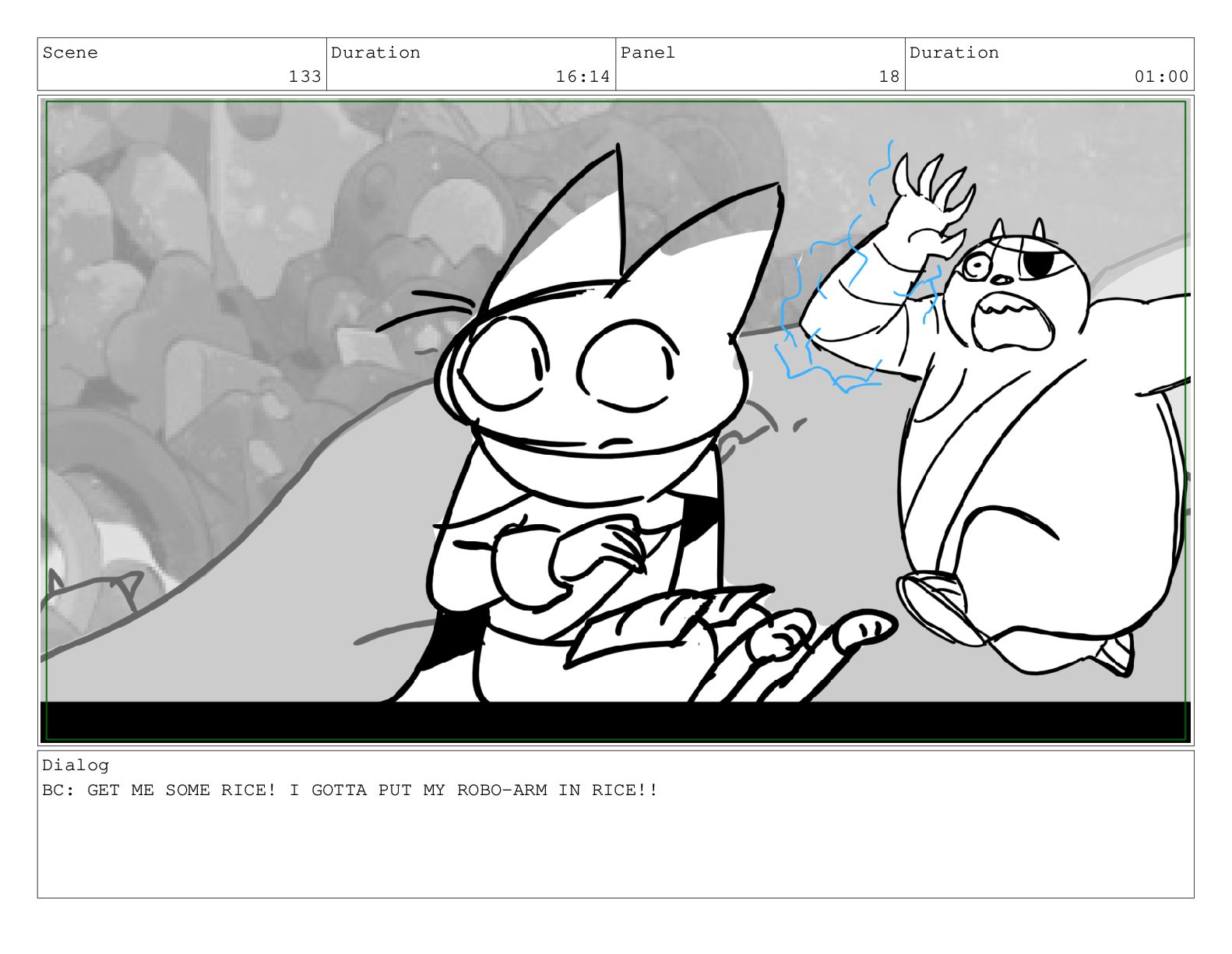 Scene 133 Duration 16:14 Panel 18 Duration 01:00 Dialog BC: