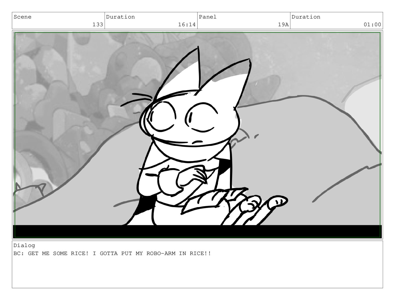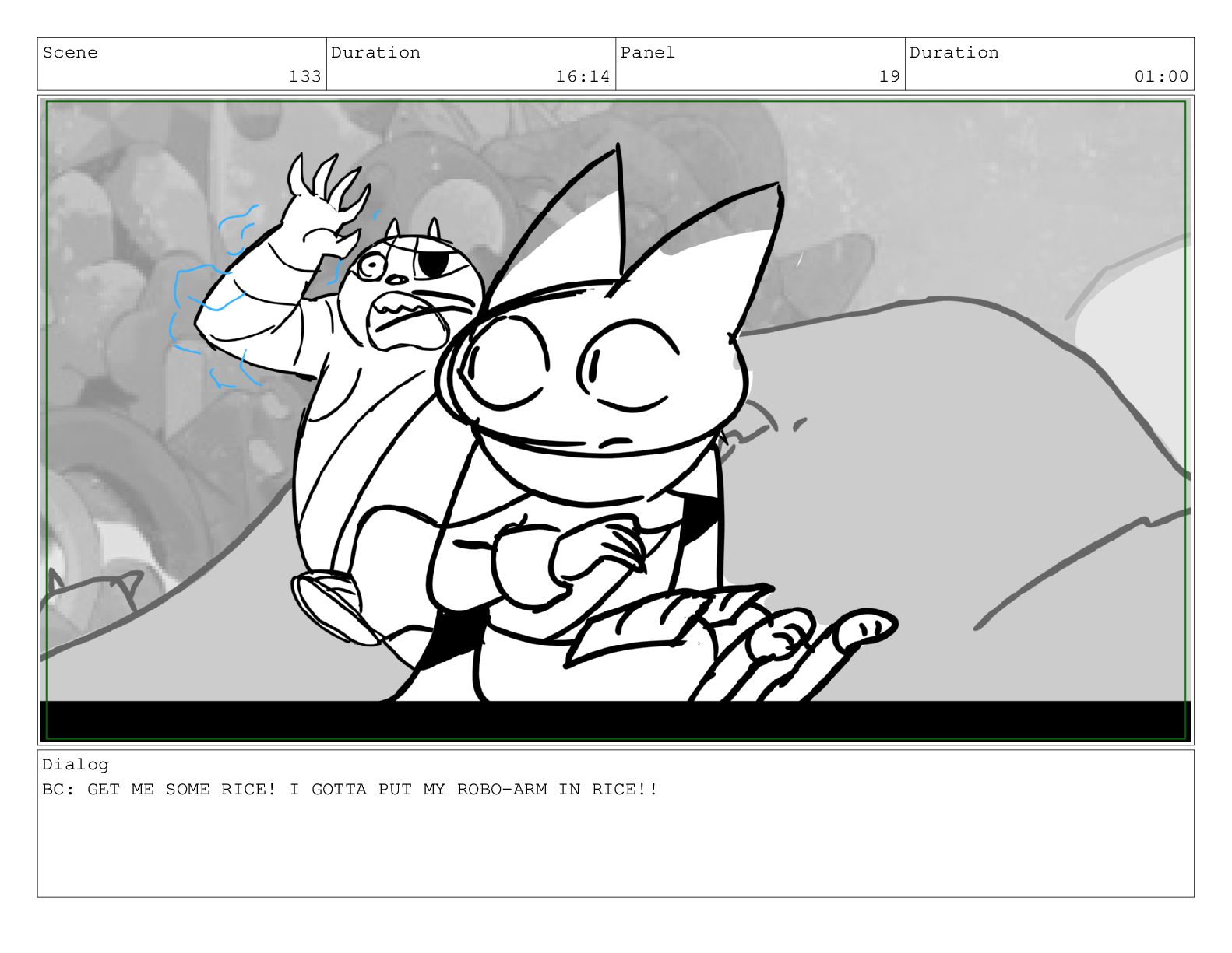 Scene 133 Duration 16:14 Panel 19A Duration 01:00 Dialog BC: