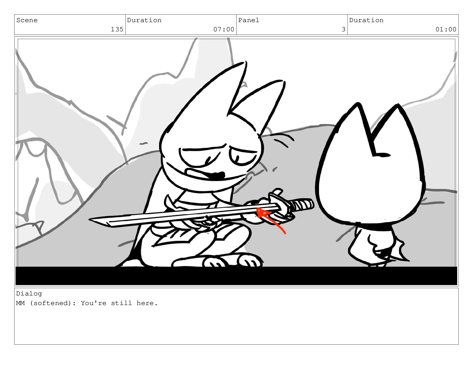Scene 135 Duration 07:00 Panel 3 Duration 01:00 Dialog MM