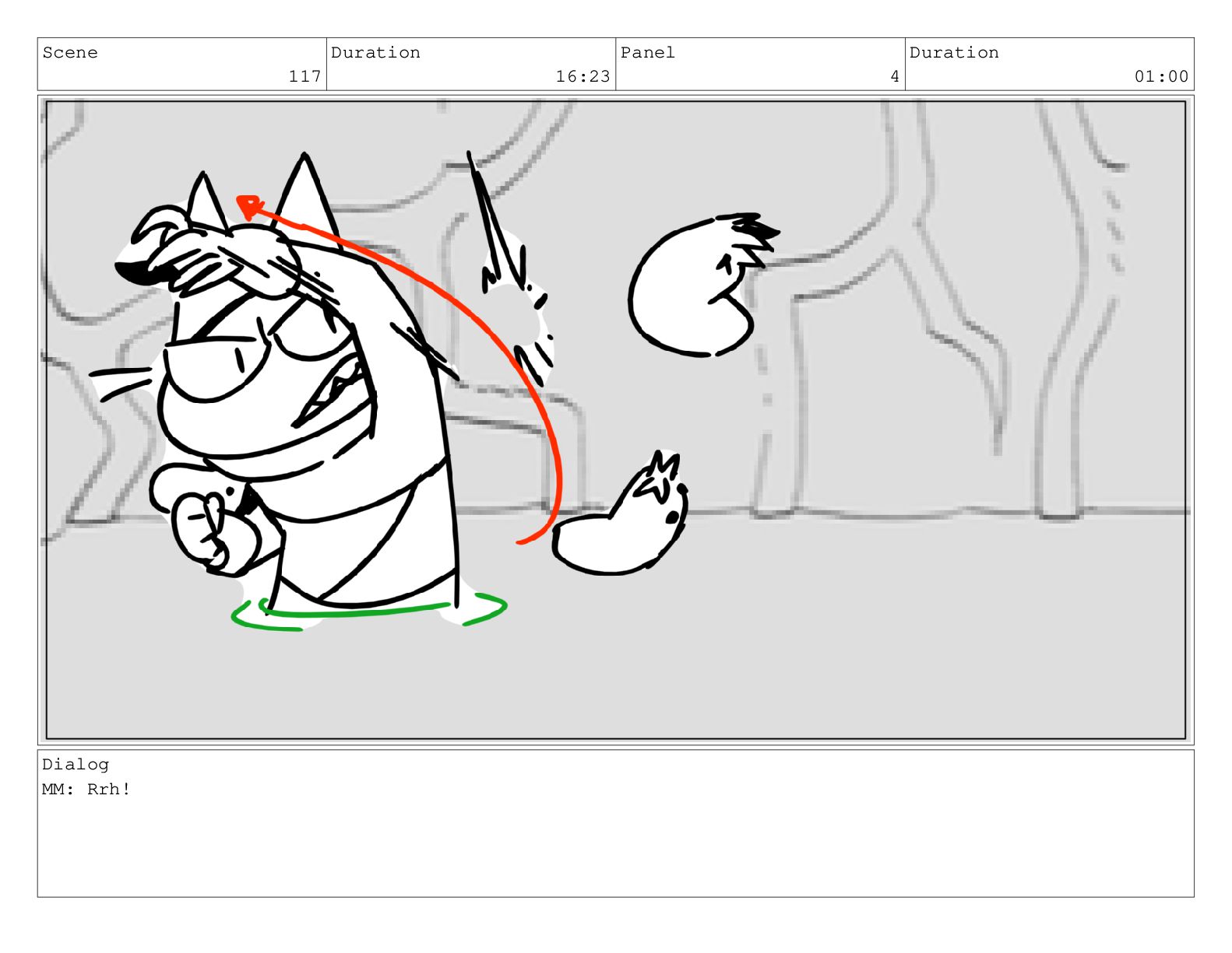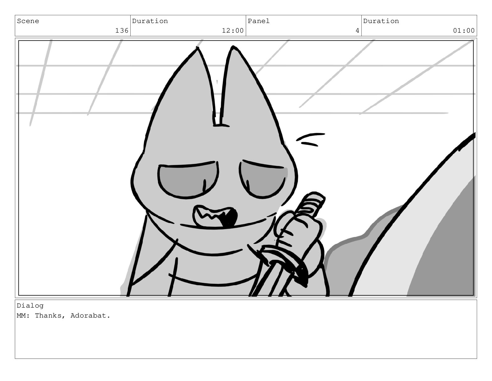 Scene 136 Duration 12:00 Panel 4 Duration 01:00 Dialog MM: