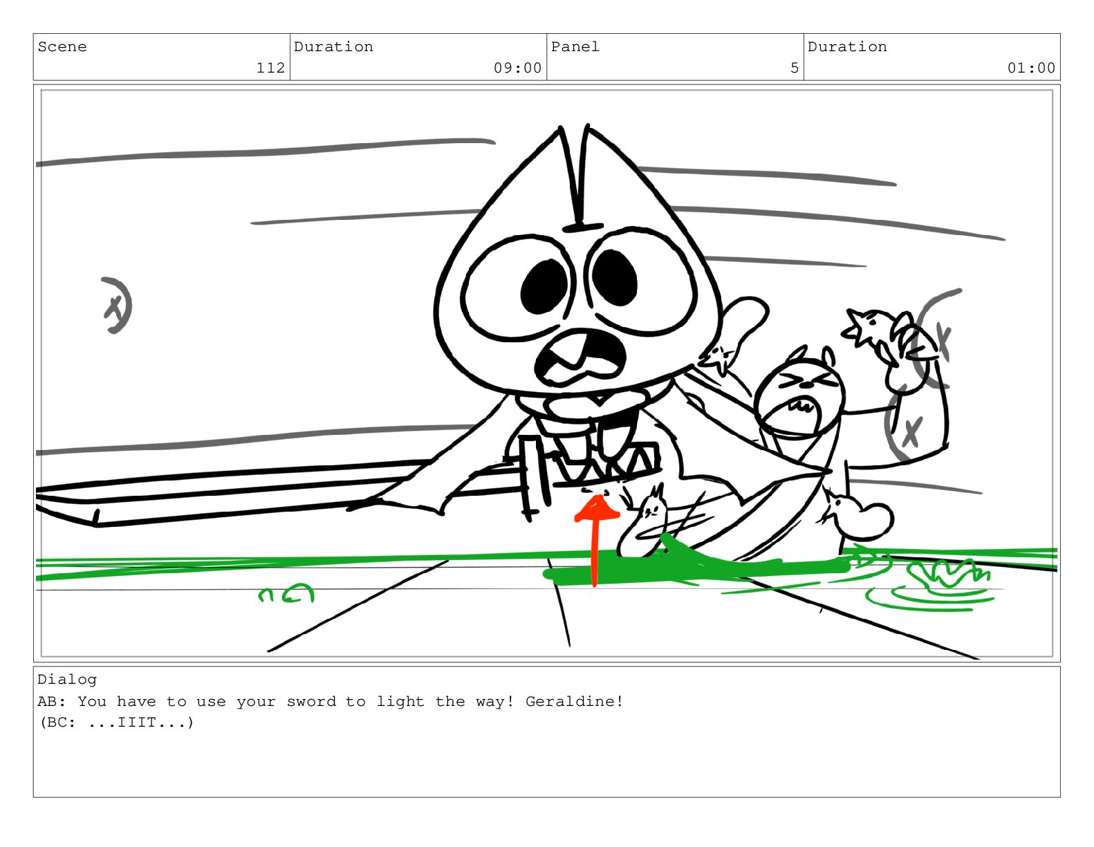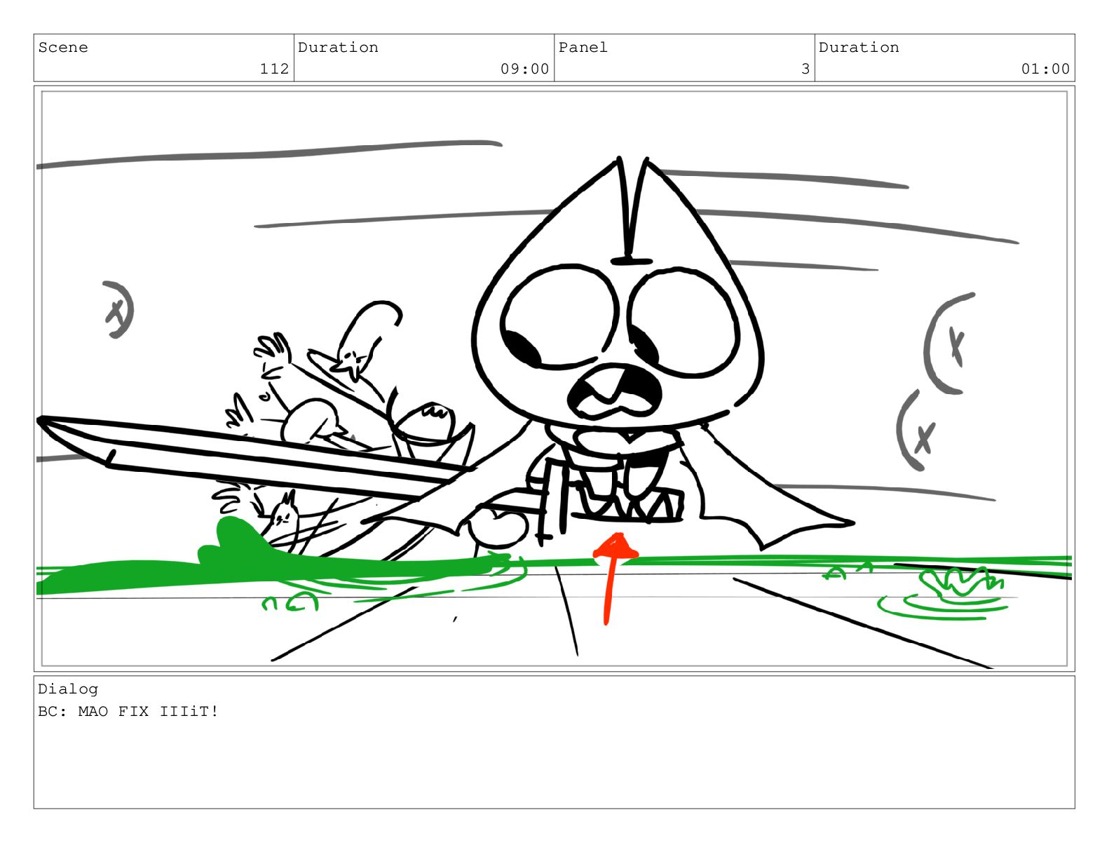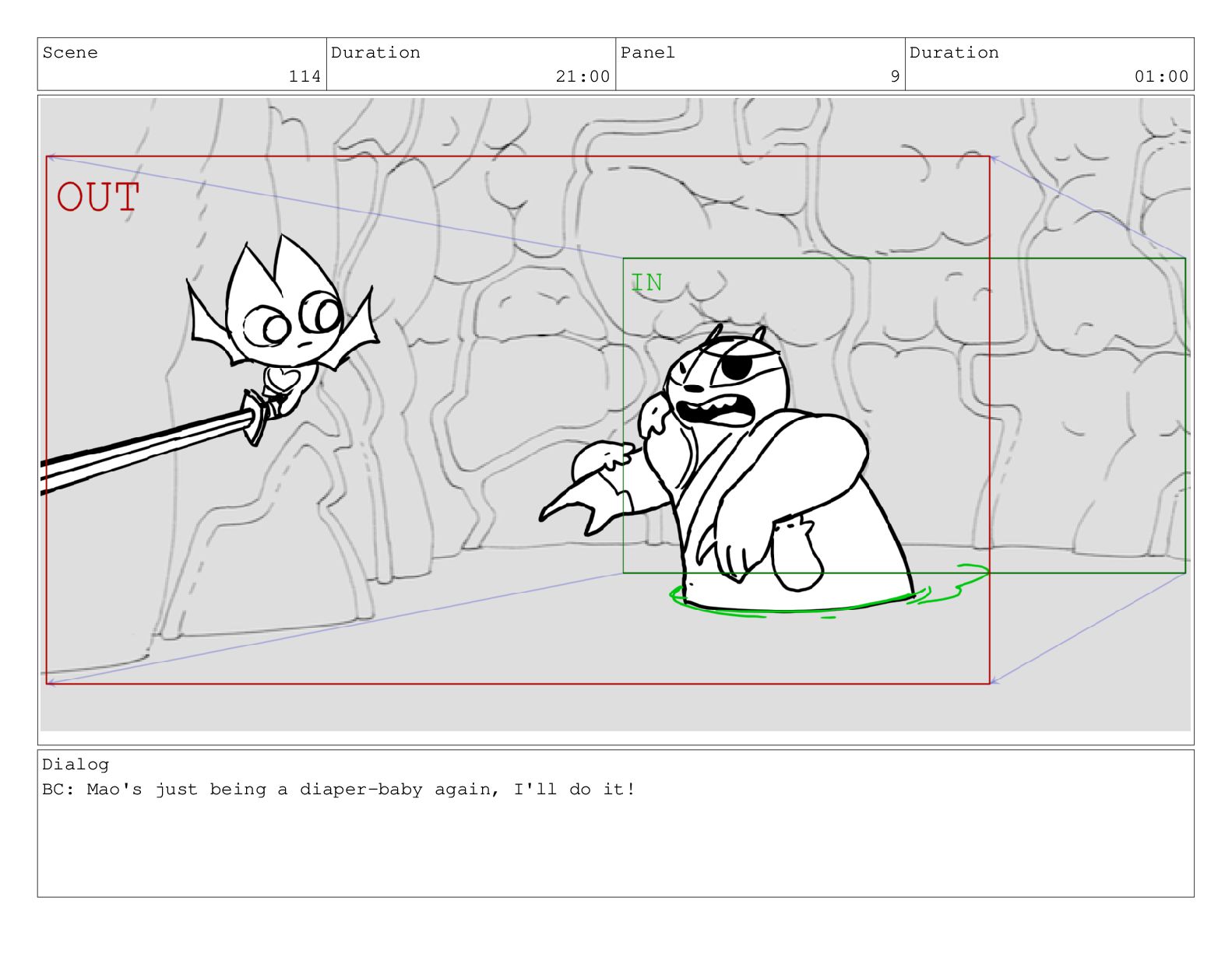Scene 112 Duration 09:00 Panel 3 Duration 01:00 Dialog BC: