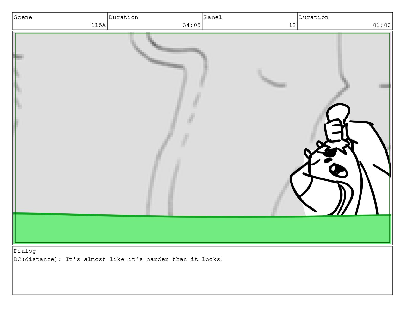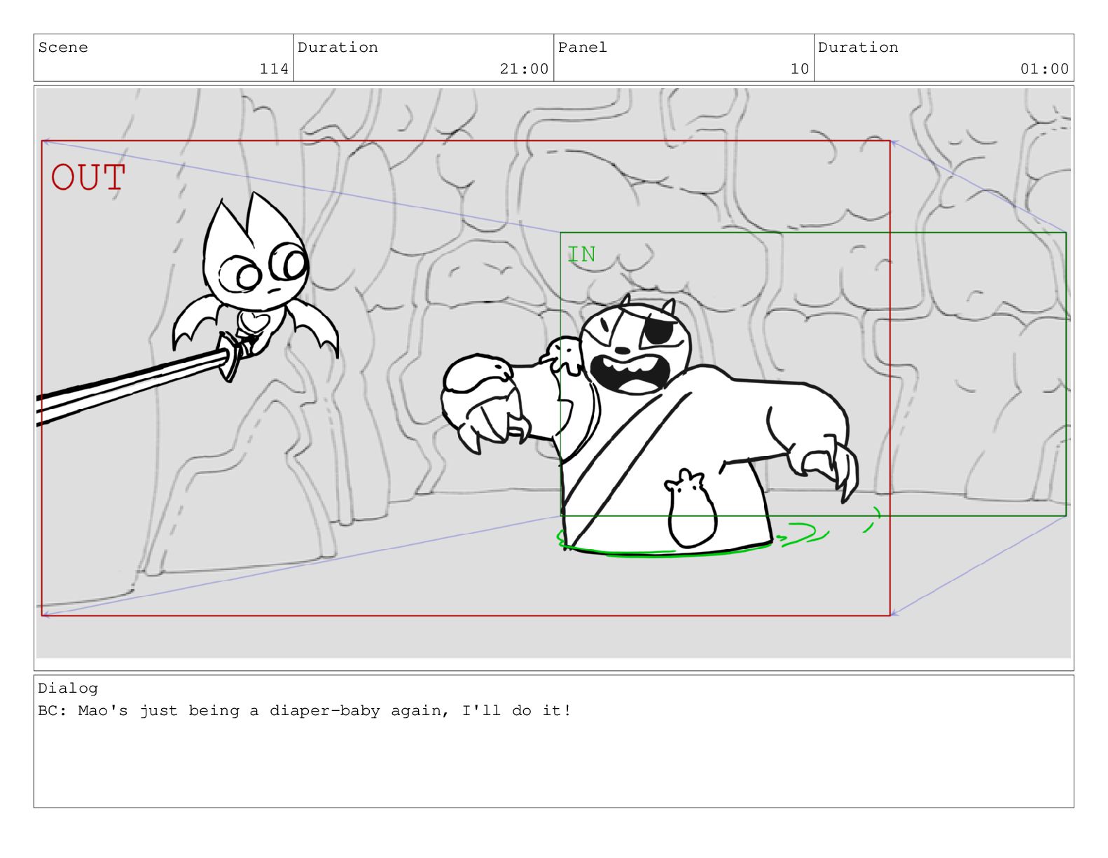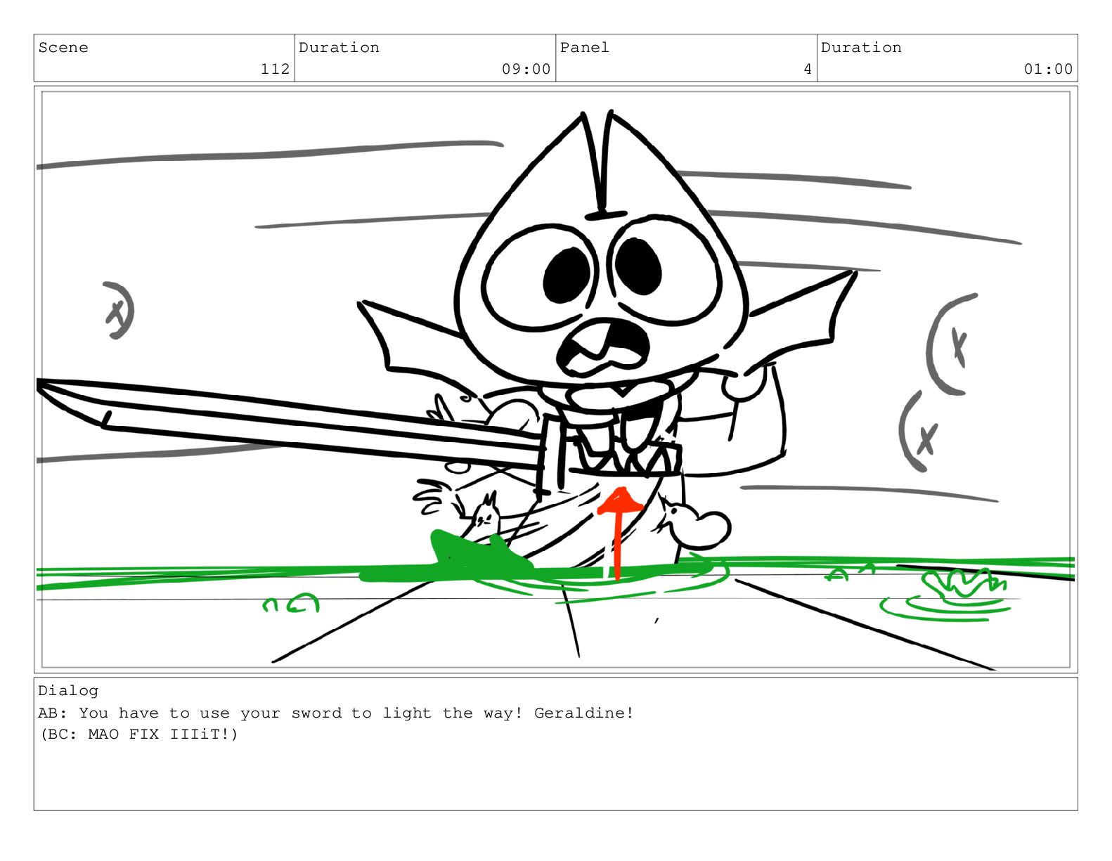 Scene 112 Duration 09:00 Panel 3 Duration 01:00 Dialog BC: